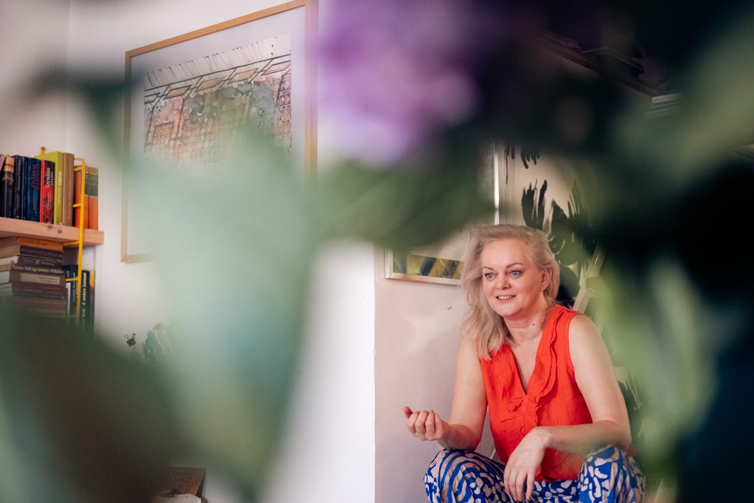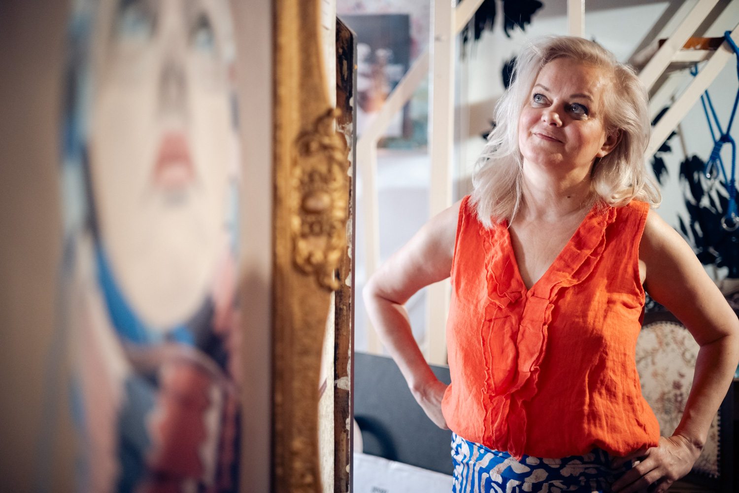 Nagyon jó belépni a terébe. Halmi-Horváth István szavaival élve: a női létezés színes tárgyözöne azonnal beburkol. Természetesnek hat, hogy lehuppanunk a szőnyegre, s a falon sorakozó régebbi és legfrissebb munkáit figyelve arról kezdünk beszélgetni, hogy bár elsőre sokféle nyelven szólnak, valójában mind ugyanabból a forrásból fakadnak. Érzem a képek közti koherenciát.