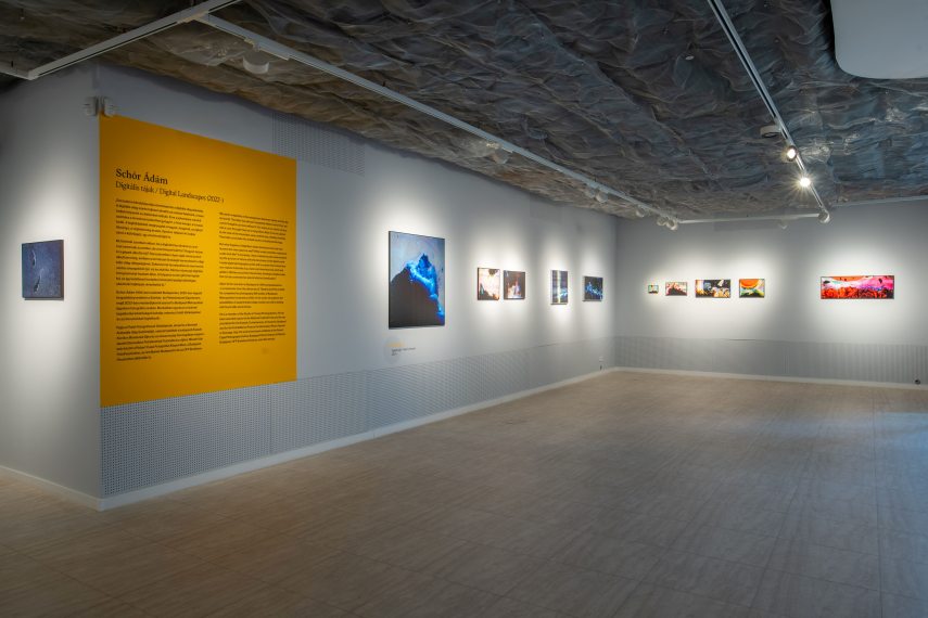 Schór Ádám Digitális tájak című sorozatában organikus és szintetikus anyagokat használ fel (víz és alufólia, föld és műanyag), amelyekből digitális fotólenyomatokat vesz. Ezekből és a folyamat során keletkező glitchekből (képi hibákból) olyan tájképek állnak össze, amelyek egyszerre mutatnak valós látványokat és virtuális világokat. A képek zajossága a digitális képernyőket juttatja eszünkbe, ugyanakkor utal arra is, hogy észlelésünket a képdömping és az információs zaj mennyire megzavarja, befolyásolja, alakítja. A mesterségesen kreált tájképek egyszerre idézik meg a természet költőiségét, finomságát és a digitális képernyők hideg-rideg környezetét.