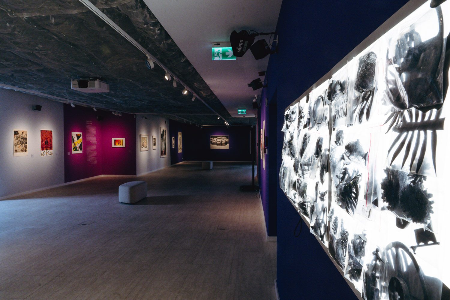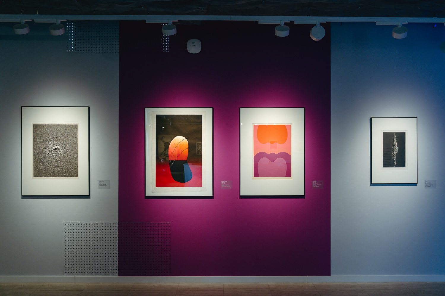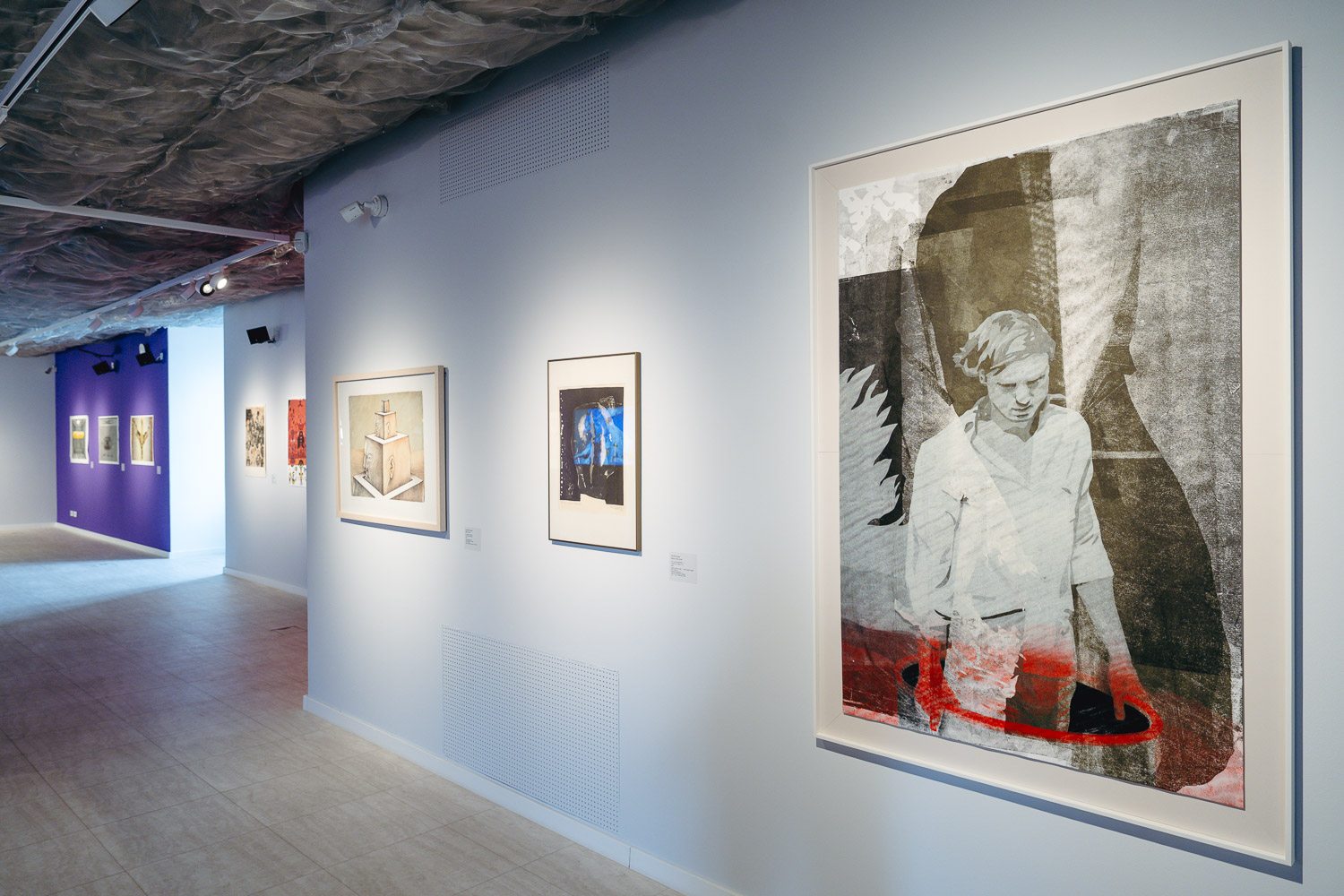 És van még valami, ami miatt ez a kiállítás igazán működik: egyszerűen jó benne lenni. Már az első pillanatban felülírja mindazt, amit a grafikáról gondolunk. Nem visszafogott, nem monokróm, nem csendes – hanem élénk, színes és dinamikus. A falakon erőteljes tónusok – rózsaszínek, lilák, sárgák – futnak végig, amelyek nemcsak dekoratív hátteret adnak, hanem aktívan formálják a tér hangulatát.