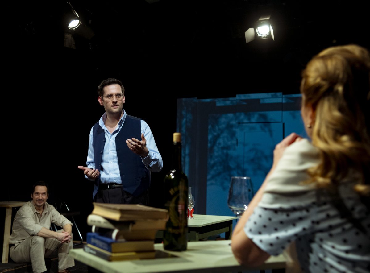 A Varga Szilvia, Szatmári Attila és Kosznovszky Márton megszólaltatta szövegek nem szorulnak az élményt kiegészítő cselekménybetétekre vagy látványos díszletekre, mindezek nélkül is elég monumentálisak ahhoz, hogy elvigyék a hátukon a darabot. Csupán néhány szék, könyv és asztal árválkodik a térben, na meg egy-egy borosüveg és -pohár. Az intim, bensőséges élményt ígérő berendezéssel összhangban van a játszók stílusa és megszólalásmódja, hiszen barátként csevegnek a nézőkkel, mintha csak együtt poharazgatnának Somlón vagy Szigligeten, fent a dombon. Vasfüggöny nincs, nézőtér és színpad összeolvad, a színészek a közönség között sétálnak, leülnek a lépcsőre, kontaktusba lépnek az őket hallgatókkal.