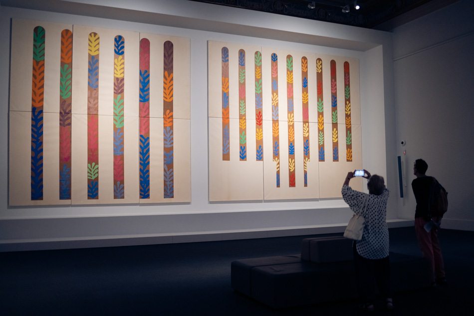 A Bosch mellett a Szépművészeti Múzeum másik nagy durranása a Matisse-kiállítás, amelyre több mint 100 művet hoztak a Centre Pompidou gyűjteményéből. A rendezés nem vállal nagyot, kronologikusan végigjárja az életművet annak minden meghatározó szakaszán, a fauve periódustól egészen a késői gouache papírkivágatokig.