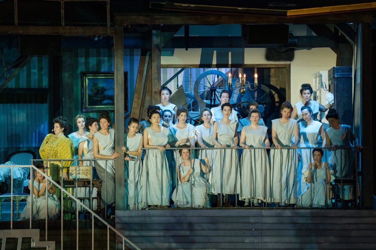 Érdekes, ahogyan az előadásban egymásra kopírozódnak a valós és elképzelt síkok: nem különül el az ábránd és a realitás, éppen ezért talán megengedőbbek lehetünk az olyan kevésbé következetes rendezői ötletekkel is, amikor a falubeliek belegázolnak a „háborgó tengerbe”, amelyben az első felvonásban még megfulladni készült a csónakból kipottyant tengerész. Eva Dessecker jelmezei egy letűnt század miliőjét idézik, egyszerűségükben mégis időtlenek.