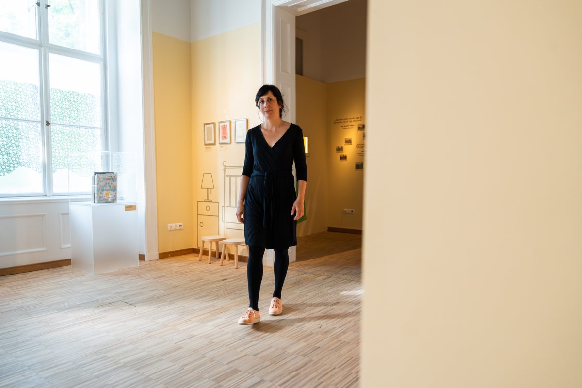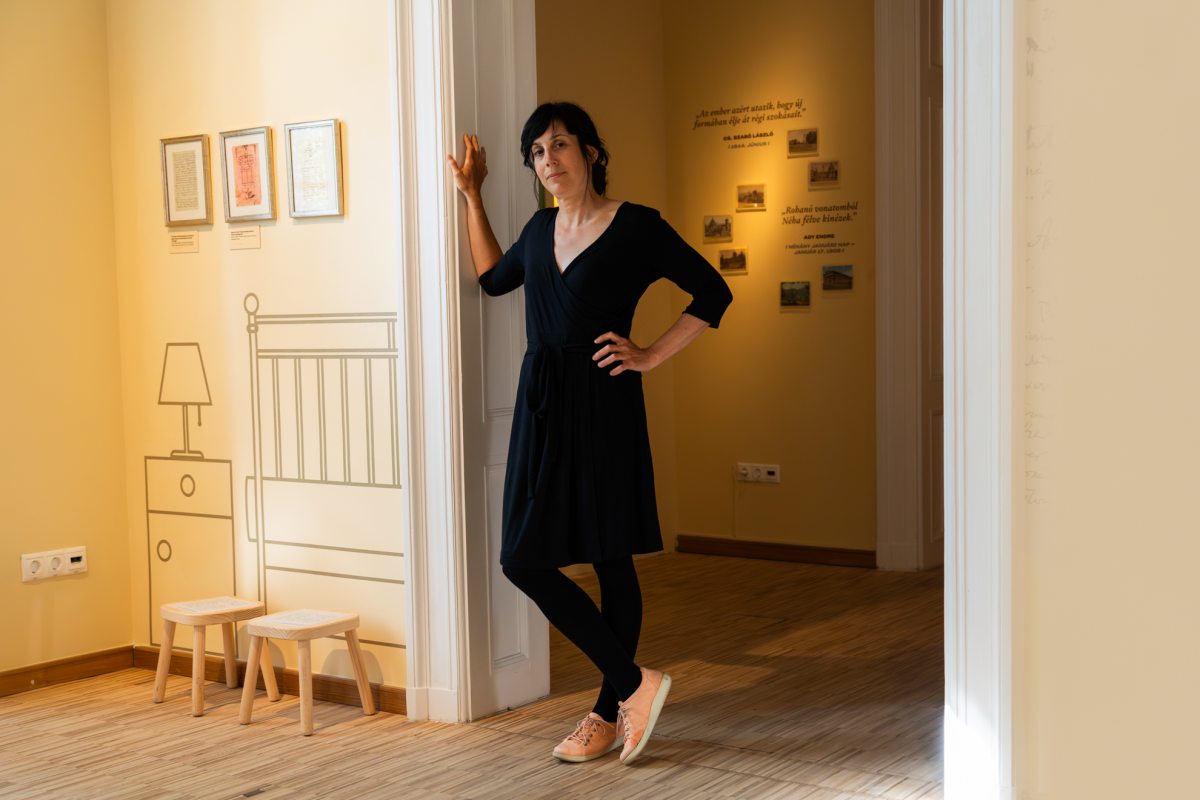 A látványtervező pedig azt találta ki, hogy a különböző tematikus termek – legyen szó az álomnaplókról, útinaplókról vagy akár háztartási naplókról – azonos falszínt kapjanak. Ezzel egyfajta vizuális egység jön létre, és az is fontos szempont volt, hogy ne kelljen radikálisan átalakítani a kiállítótereket. A fenntarthatóság jegyében ugyanis az előző kiállítás struktúrájából sok mindent meghagytunk, tulajdonképpen csak a falakat kellett újrafesteni.
