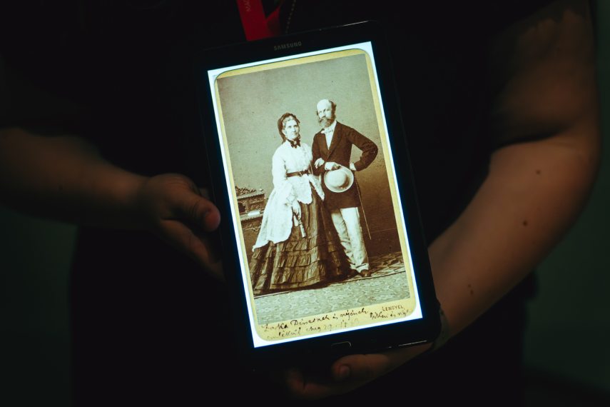 Megtudhattuk továbbá, hogyan vált Jókay Móricból a híres Jókai Mórrá. „Az édesapja azért adta a Móric nevet Jókainak, mert a kedvenc regényhőse, Móric is ezt a nevet viselte. Viszont az író egyik barátja, Tóth Lőrinc egy alkalommal rövidítve címzett meg egy levelet, azaz Jókay Mór részére adta fel a küldeményt – hogy véletlenül hagyta le a név végét vagy szándékosan szerette volna becézni az írót, azóta sem tudjuk. A válaszlevelet azonban ismerjük, amelyet Jókai »Tóth Lőr kezébe« címezéssel adott föl” – mesélte a tárlatvezető. Az író aztán 1848. március 15. után cserélte le nevében az y-t, ezzel jelezve, hogy nemesi származásának előnyeivel nem kíván élni.