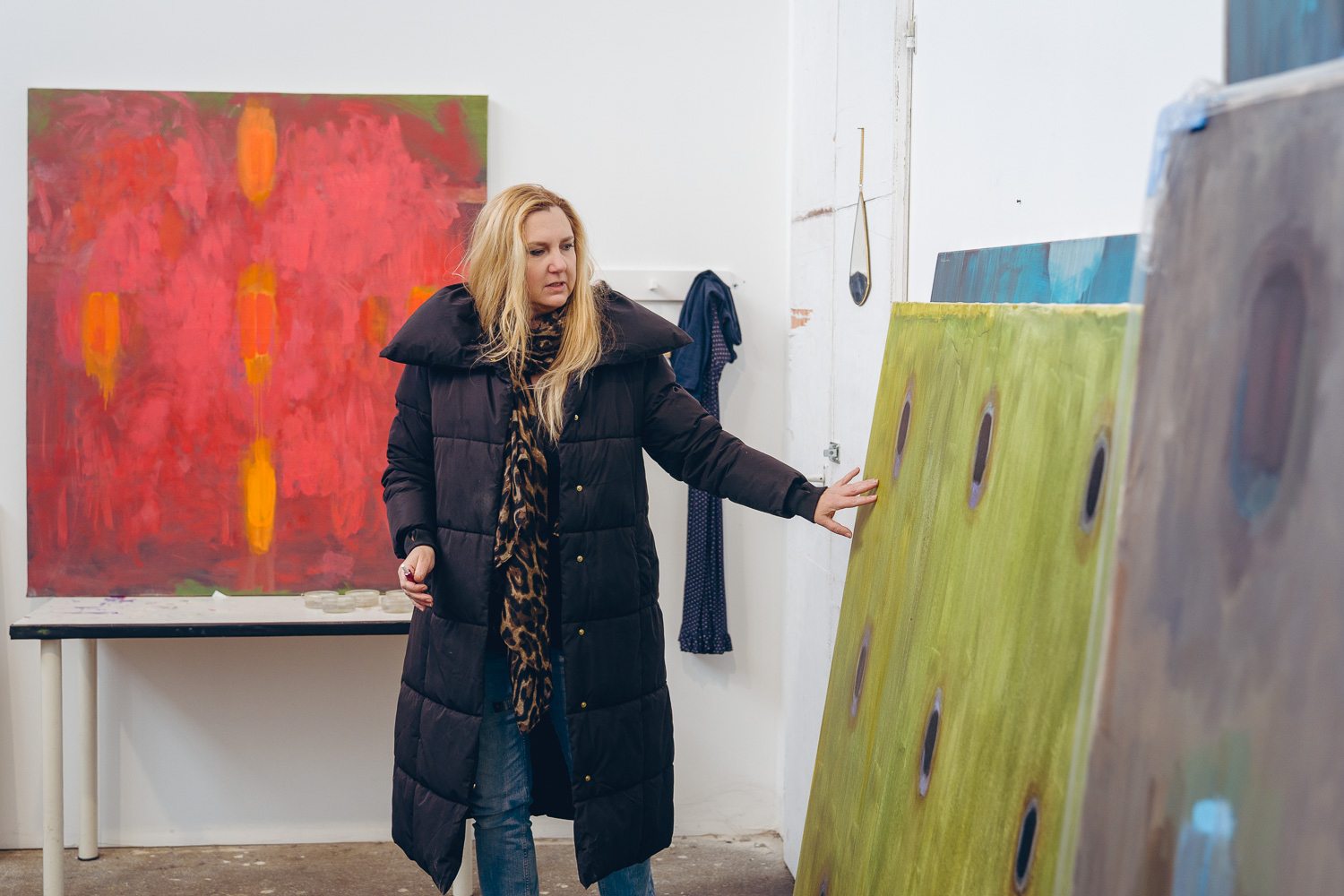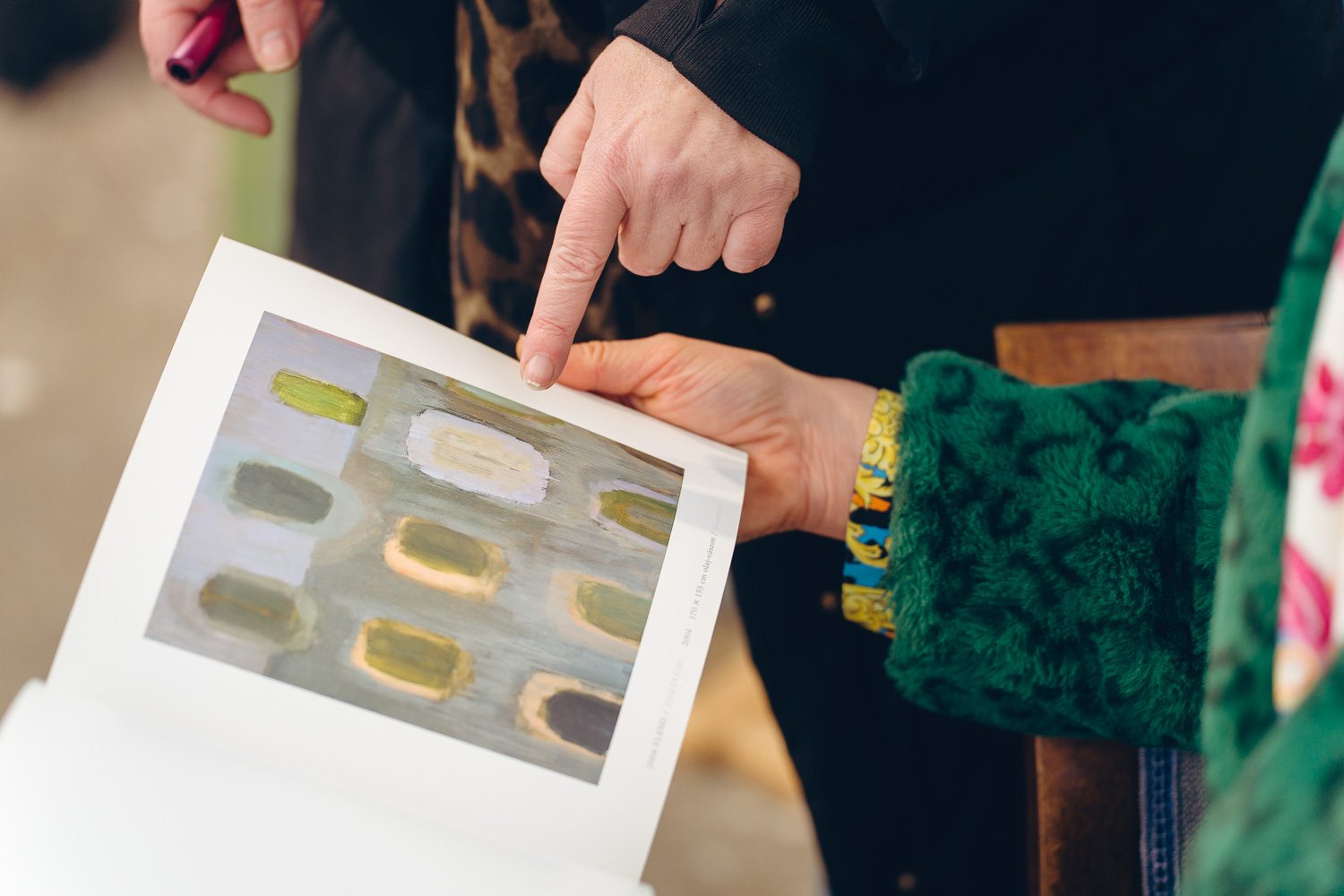 Első pillantásra meglepő lehet, hogy a művész 2022 óta látszólag ugyanazt a kompozíciót festi. Könnyű volna azt gondolni, hogy ez a praxis önmagába záródik, és folyton önmagát játssza újra. Juhász Dóra műtermében körbetekintve azonban hamar világossá válik, hogy a variációk kimeríthetetlenek. Festészete nem a miről, hanem a hogyanról szól: a festés folyamatáról, a döntések finomságáról, a színek, ecsetnyomok és terek viszonyáról.