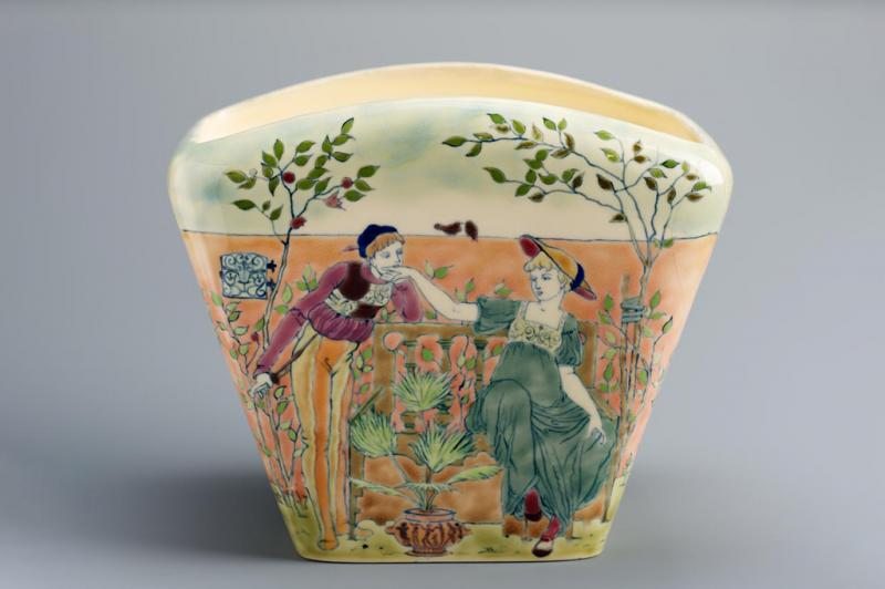 Zsánerjelenetek idilli helyszíneként is ismert a kert, rokokó legyezőkön, biedermeier üdvözlőlapokon, romantikus ábrázolásokon vagy historizmus kori díszkerámiákon láthatunk hasonlókat. A kerti környezet egyszerre közvetíti a lovagi szerelemeszményt, a beteljesületlen vágyakozást, ahol virágok mesélnek csak az érzelmekről, illetve a hódolás helyébe lépő udvarlás gesztusát. Sőt erotikus utalás is lehet egyben.