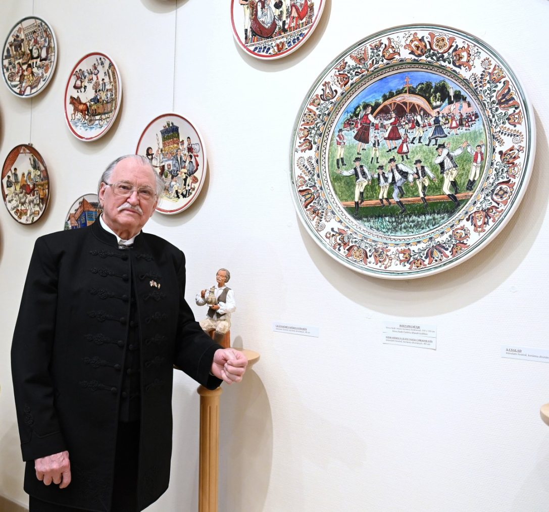 Kovács Gergelyné Szabó Irén kultúrtörténész elmondta, Józsa János a járványhelyzet alatti bezártságban nyolcvan nagy méretű kerámia dísztányért készített a legnehezebb technikával, máz alatti festéssel.