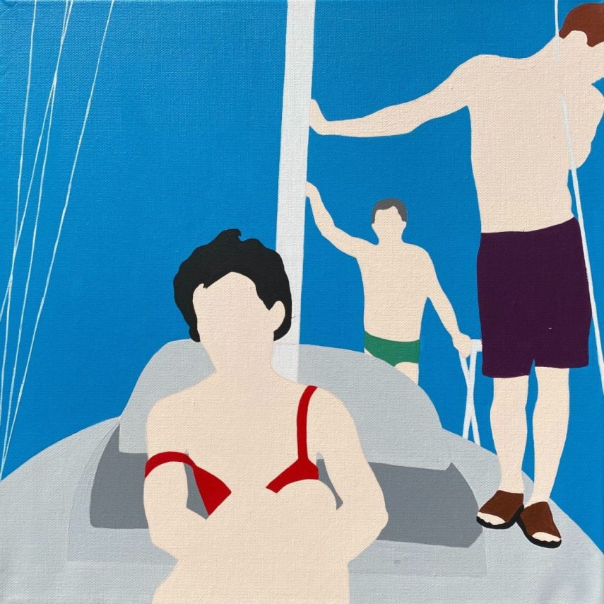 Berecki Kata mindennapos jeleneteket ábrázol festményein, amelyekhez a maga emlékeivel a néző is könnyedén kapcsolódhat. Az erősen hangulatidéző kompozíciókon jellemzően arctalan emberek kapcsolatai elevenednek meg. Az arcvonások hiánya tered ad annak, hogy a személyeket mindenki maga helyettesítse be. Nincsenek kapaszkodók, amelyek a képek üzeneteit egyértelművé tennék. Élénk színhasználattal dolgozik, amely leginkább a ruházat jellegzetességeit emeli ki. A P-08 című kompozíció nyári vitorlázást mutat be, amely tengerparton és a Balatonnál is játszódhat. Az alakok helyére gondolatban magunkat és ismerőseinket helyettesíthetjük be. A jelenetet nézegetve emlékezhetünk és fantáziálhatunk, sőt akár egy forgatókönyvíró szerepébe is képzelhetjük magunkat, és további képkockákkal egészíthetjük ki a nyári történetet.