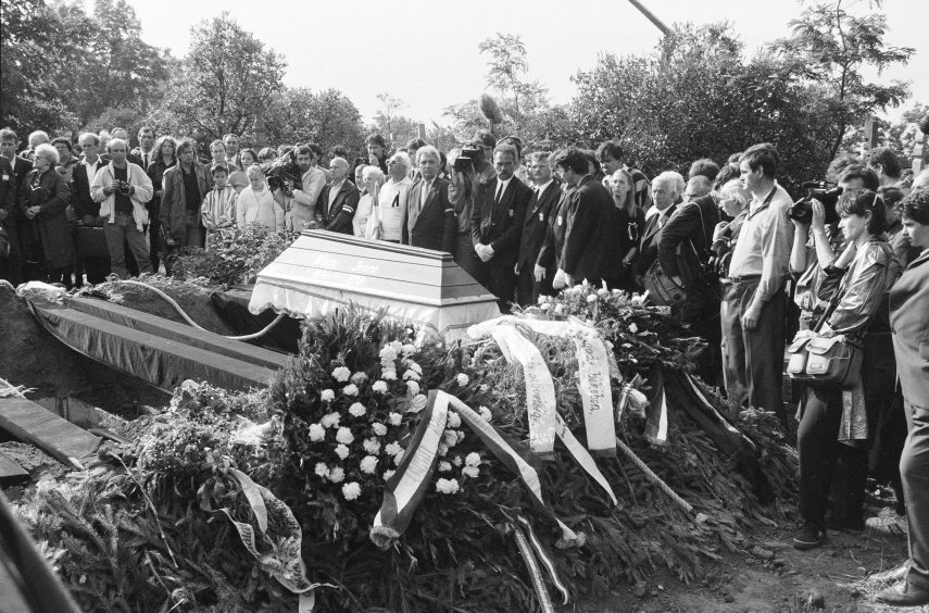Nagy Imre újratemetésén, 1989-ben egymás mellett álltak. A Világ Igaza Király – aki munkaszolgálatosok iránti irgalmával érdemelte ki a díjat, noha a kor tanúi szerint nagy karlendítő volt a Szálasi-diktatúra idején – és Gömbös Gyula unokahúga, a besúgók gyöngye, aki az iratok tanúbizonysága alapján nagy lelkesedéssel és szorgalommal jelentett. Két volt házastárs a jeles eseményen, akik személyében – cseppben a tenger – az új magyar demokrácia jelképes kiindulópontján 20. századi történelmünk szinte minden groteszk és félelmetes fordulata, rejtői és örkényi abszurditása jelen volt.