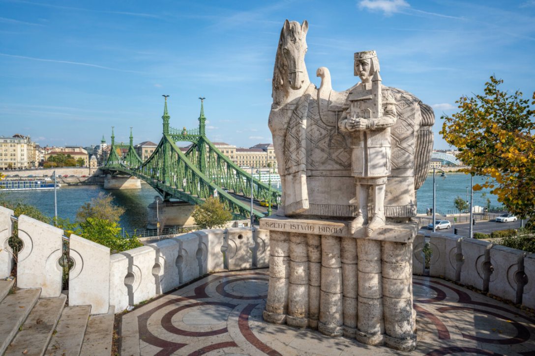 A Gellért-hegyen 2001 pünkösdjén avatták fel Szent István szobrát. Ott voltunk az ünnepségen. A villamosról mindig látom. S bár akkor azt írta az egyik műtörténész, hogy hiábavaló, mert a Várban ott a szent király szobra, én azt hiszem, bár erről nem beszéltünk, hogy Lujos arra gondolt: a pogányok a legenda szerint innen gurították le szöges hordóban Gellértet, a hittérítőt, és István az ő mártíromságának emlékét őrzi.