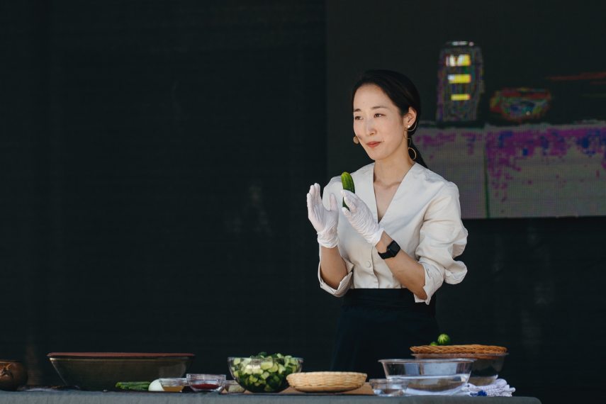 A szombati napon 13.30-tól gasztronómiai előadáson vehettünk részt, ahol Kim Taeyeon a The Kimchi Institute vezetője és séfje elmagyarázta lépésről lépésre, hogyan lehet elkészíteni az uborkakimchit. A kimchi a koreaiak nemzeti étele, mely fermentált zöldségekből áll és különböző fűszerekkel és aromákkal ízesítik. A séf megosztotta velünk, hogy több mint kétszáz különböző tradicionális kimchi létezik, világszerte pedig több mint ezer fajta. Ez azért lehetséges, mert a kimchit igazából bármilyen zöldségből elkészíthetjük. A koreaiak egyik legnépszerűbb étele változhat különböző régiók, alapanyagok vagy fűszerek alapján is.