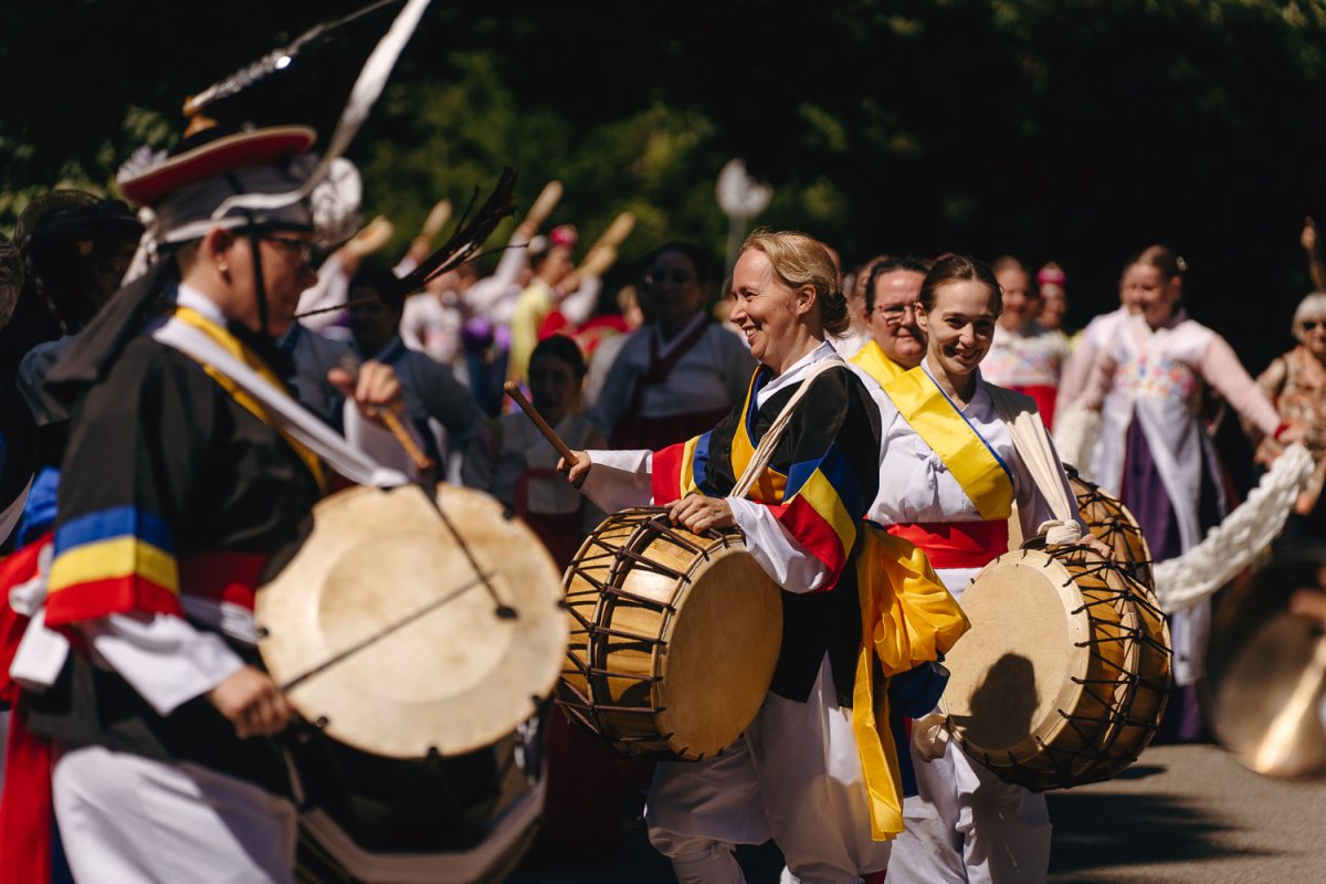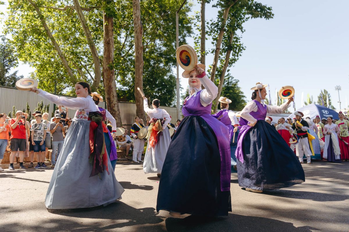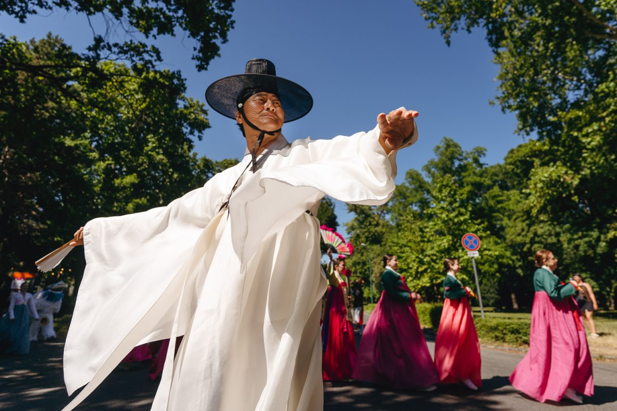 A táncelőadások végeztével a nap egyik legtöbb érdeklődőjét vonzó program következett, a felvonulás. Színpompás ruhákban vonultak körbe a magyar előadók, akiket a nap folyamán láthattunk. Őket tradicionális koreai hangszerekkel és élénk mozdulatokkal kísérték körbe a rendezvény helyszínén szintén magyar és koreai társaik. A felvonulók a Margitsziget egy kis részét is körbejárták és különböző érdekes táncokkal és ütős hangszerekkel vonzották oda a járókelőket. Bár több mint nyolcezer kilométer van a két ország között, ezt a távolságot is áthidalta a kulturális kötődés a két nap folyamán.