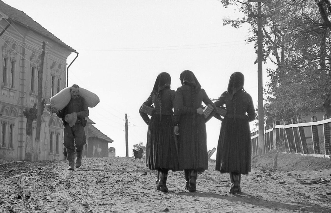 Szinte csettintésre jött a fordulat. Ez jól látszik a már említett nyitóképen: először lehetett kiírni magyarul, hogy Szék. És el lehetett menni Magyarországra dolgozni. Szegénység volt, mindenki Nyugatra tartott. A magyar nyelvet ismerték, így ide jöttek dolgozni. Rendkívül jó észjárású emberek a székiek, a keresztlányom anyja, Mari egy csoda volt. A táncházmozgalom miatt rengetegen jártak Székre. A székiek akkoriban nagyon nyitottak voltak, rengeteg telefon, cím cserélt gazdát. Amikor az első hullámban jöttek át, a férfiak mentek a sántérra – építkezésekre –, az asszonyok pedig árultak. Nagy keletje volt a népművészeti holmiknak. Az egyik fotómon látszik, hogy a mai Széll Kálmán téren 30–40 széki asszony körben állva árusít. Idővel azonban a kereslet csökkent, így takarítást, idősgondozást vállaltak. Ennek is hagyománya volt: az első világháború óta a konfirmáló lányok cselédnek álltak, bár ezt a kifejezést nem használták. Nálunk Kolozsváron is mindig volt lány, így mondtuk. Egy gyerekkori képemen együtt állok az egyikükkel. Később a viseletből visszafejtettem, hogy mezőségi lány lehetett.