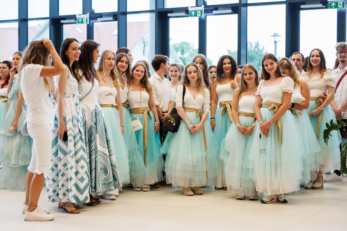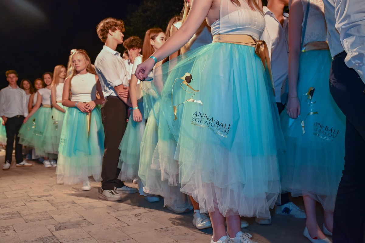 A lányok egy pazar halványkék, aranyszalagos, Anna-bál feliratos tüllszoknyát is kaptak ajándékba: a ruhadarabot a Balaton hullámai és a kétszáz éves hagyomány időtálló bája, finom romantikája ihlette.