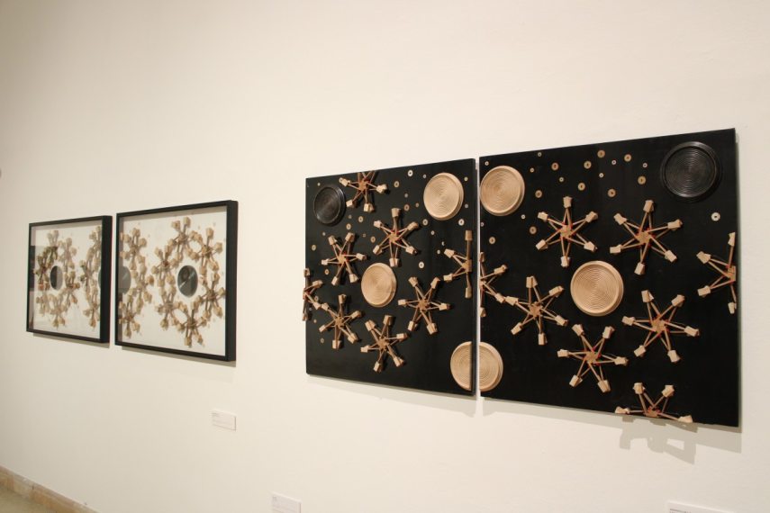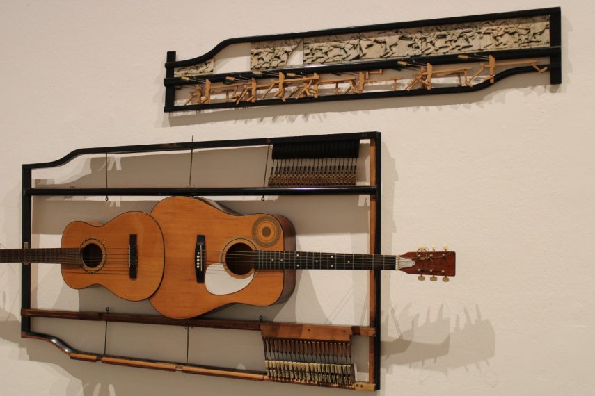 Mácsai János zenetörténész és hangszer-restaurátor szubjektív tárlatvezetése nyomán szinte megszólaltak az alkotások. A háromdimenziós képszobrok, amelyek a festmények és a nonfiguratív szobrok határterületére sorolhatók, sajátságos viszonyban állnak a zenével. A hangszerdarabok, sosem látott, de egyértelműen hangszer benyomását keltő tárgyak vagy éppen a hangszerdarabokból összeállított installációk első pillantásra meghökkentők. De az is szembeötlő, hogy a tárgyakból harmónia árad. Míg egy zongora belsejét, a hangszert felépítő alkatrészeket kevesen ismerik, Barabás Márton alkotásain egyértelműen felismerhetjük, hogy az alkotóelemek korábban zeneszerszámok részei voltak.