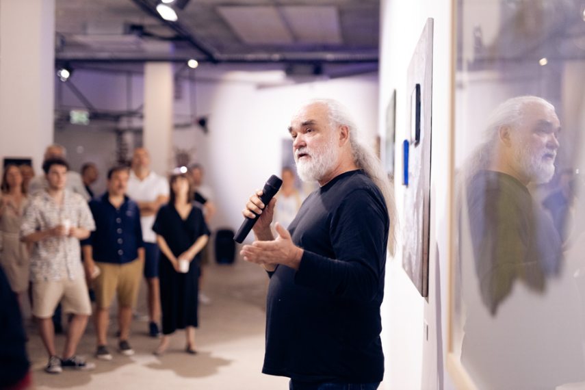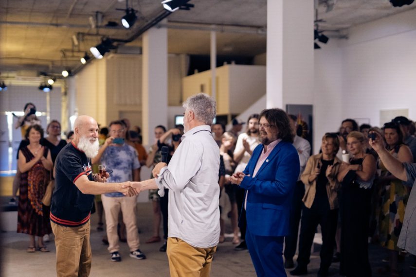 A sort Péli Barna kezdte. Boldog, hogy itt lehet, mondta, majd Átmeneti tárgy című alkotásáról beszélt, amelyet viccesen Karácsony kapitánynak nevezett el.