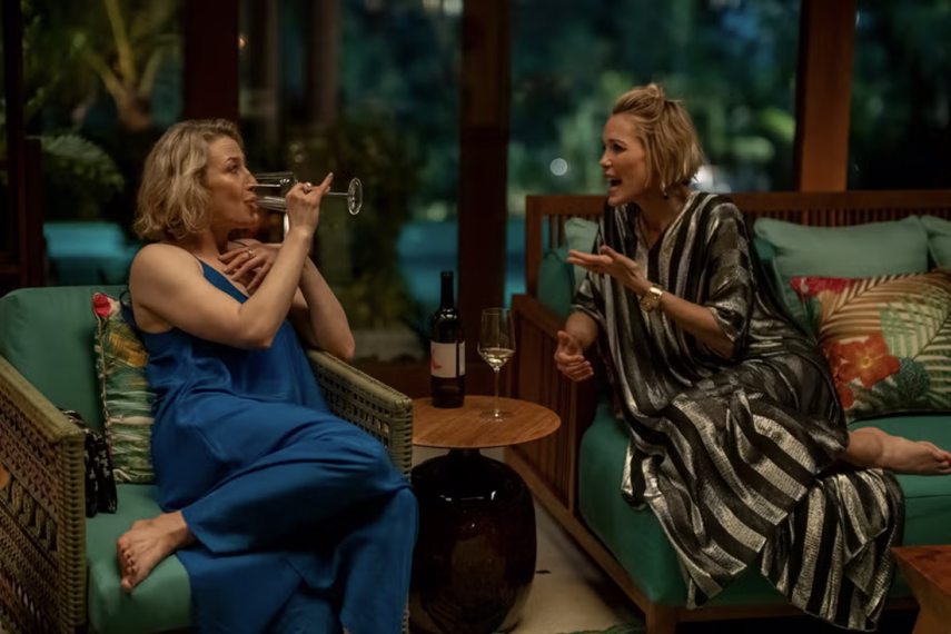 A sorozat ezúttal is a finom szembeállásokra épít, a Z generációs, elkényeztetett gyerekek és szüleik nemzedéki ellentéteire, az A státuszú vendégek és a személyzet konfliktusaira. Ellentét feszül a három középkorú, de fiatalos életvitelű gossip girl barátnő között, több mint három évtized elteltével kibukik Laurie-ból (Carrie Coon), a sikeres és gazdag ügyvédnőből, hogy mindig is zavarta, hogy a másik két lány szebb volt, mint ő. Hiába jöttek a paradicsomi Koh Samui szigetre, hogy kisimítsák az idegrendszerüket, valójában rivalizálás és egymás elleni jászmák kísérték a masszázsokat és a rekreációs koktélok elszürcsölését. Gyorsan kiderül, hogy a tökéletesen komponált Insta-szelfijük nem más, mint a nagybetűs élethazugság felképezése, mindezek mögött sikertelen házasságokkal, zsákutcába jutott karrierekkel, hálátlan gyerekekkel.