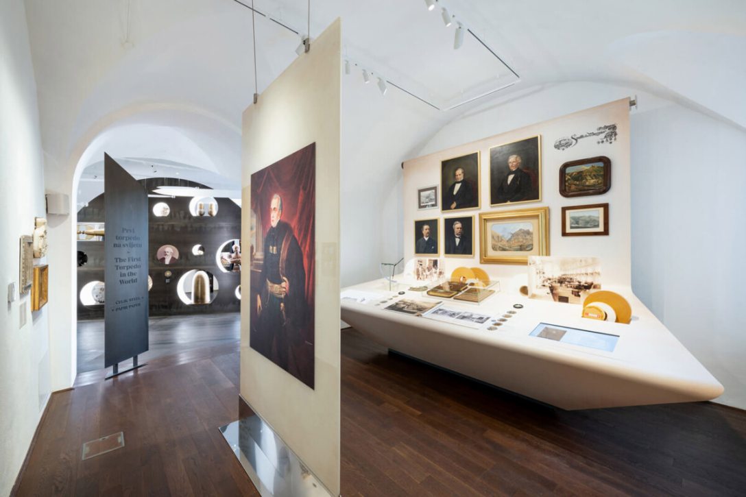 A közelmúltban külön torpedómúzeum is nyílt az egykori közraktárakban, és manapság ez Rijeka egyik legérdekesebb új látnivalója. De csak májustól, a turistaszezon kezdetétől tart nyitva. Sebaj, hisz itt, a Cukor palotában, a várostörténeti kiállításban is hatalmas és látványos installációt kap a torpedó. A The First Torpedo in the World című teremben mintha egy csatahajó géptermében lennénk. Egy nagy, szürke páncélfalat látunk, amelyben különböző kaliberű löveglyukaknak tűnő fachok találhatók, és ezekben tűnik fel egy-egy Fiuméban készült régi torpedóalkatrész, hadiipari gyártmány. És itt látható az egyik „löveglyuk fülkében” a fiumei születésű Giovanni Biagio Luppis (Ivan Blaž Vukić) haditengerész kapitány mellszobra, akinek a fejéből az 1860-as években kipattant a torpedó ötlete. Az ideát aztán a helyi Whitehead gyár és annak angol tulajdonosa, Robert Whitehead fejlesztette világszabadalommá és világszerte elterjedt hadiipari termékké. Itt, Fiuméban.
