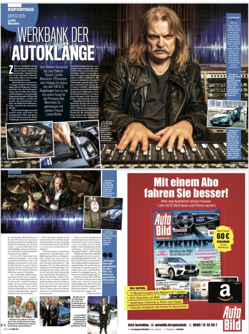 Nemrégiben röppent fel a hír arról, hogy Németország egyik legjelentősebb autós magazinja, az Auto Bild hosszú cikkben méltatta Leslie Mandoki munkásságát az autóiparban betöltött kiemelkedő szerepe okán. Mint közismert, Leslie Mandoki valódi muzikális ezermester; zenészi, zeneszerzői és szövegszerzői tevékenysége mellett producerként szerzett hírnevet, emellett alapítója és összetartó vezéregyénisége a Mandoki Soulmates zenekarnak, amely a világ minden tájáról neves zenészeket tudhat tagjai között.