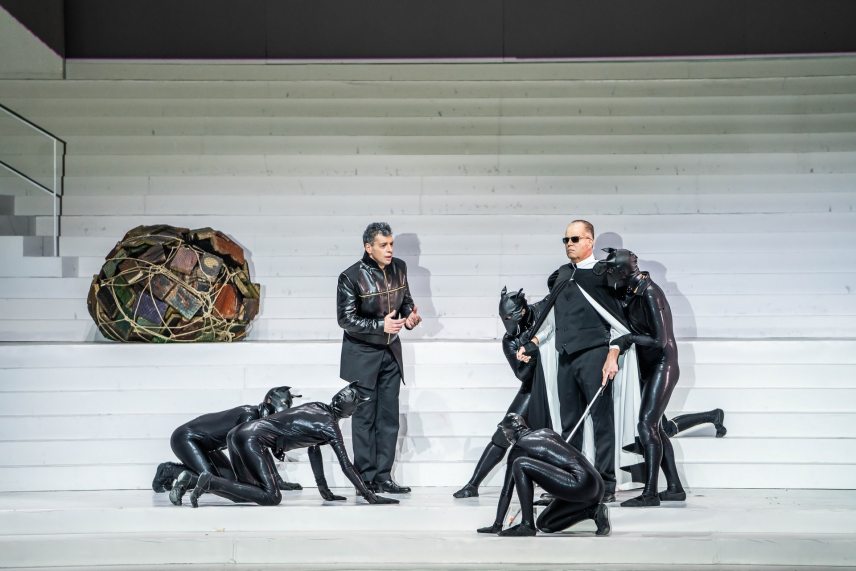 Az előadás szimbólumokban gazdag díszleteit Volker Thiele, a mai kort idéző jelmezeit Gabriele Rupprecht tervezte.