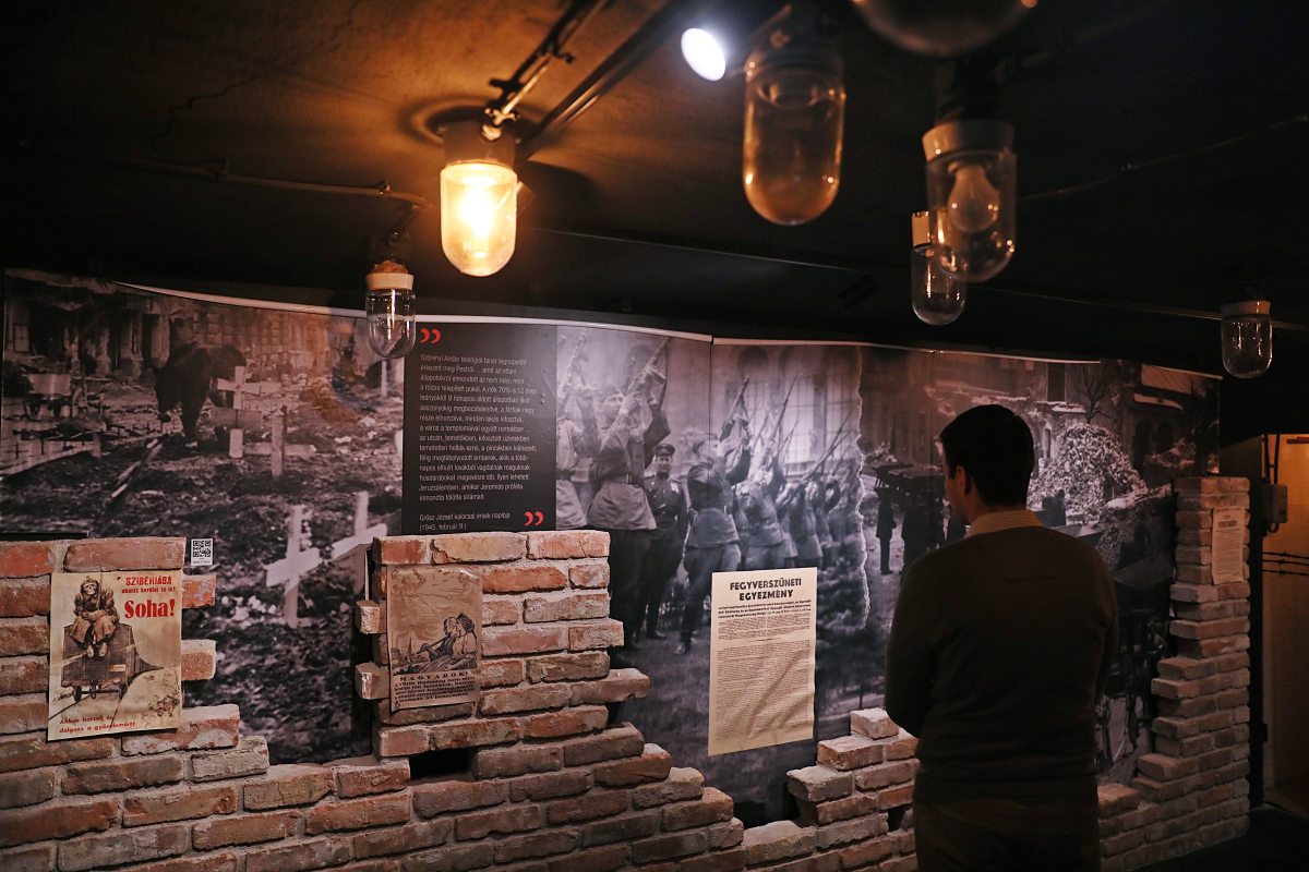Különleges a helyzetem, hiszen ezúttal én vagyok az egyetlen látogató. Kalauzom Fülöp Márton, az emlékhely koordinátora, aki elsőként a múzeumnak otthont adó épület történetét vázolja röviden: a kívülről kissé otromba – ám eredeti céljának minden bizonnyal épp e kialakítással kedvező – épület korábban a Magyar Államvasutak légoltalmi óvóhelye és vezetési pontja volt, az ötvenes években átadott atombiztos építmény. A bejárat melletti helyiségben zuhanyzókat pillantok meg: ide vezetett a sugárfertőzöttek első útja. A falak ma feketék – ez összhangban van a témából fakadó nyomasztó légkörrel –, de régen fehérek voltak, hogy ezzel a színnel is nyugtassák a védelemre szorulókat. A bunker gépházának szerkezeteit Fülöp Márton szerint egy szakember ma is működésbe tudná hozni néhány óra munkájával, és ugyanez a helyzet a külön szobát kapott telefonközponttal.