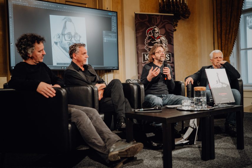 Bérczes László bevallása szerint nem tud mit kezdeni a képregénnyel, fiatal korában is inkább csak a Rejtő-képregényeket olvasta, de pont ebből a kívülálló pozíciójából tudta izgalmasan irányítani a beszélgetést. Amikor arra kérdezett rá, hogy miért nincsenek szövegek a képeken, azaz miért a kép mellé rendelik az írást, akkor kiderült: