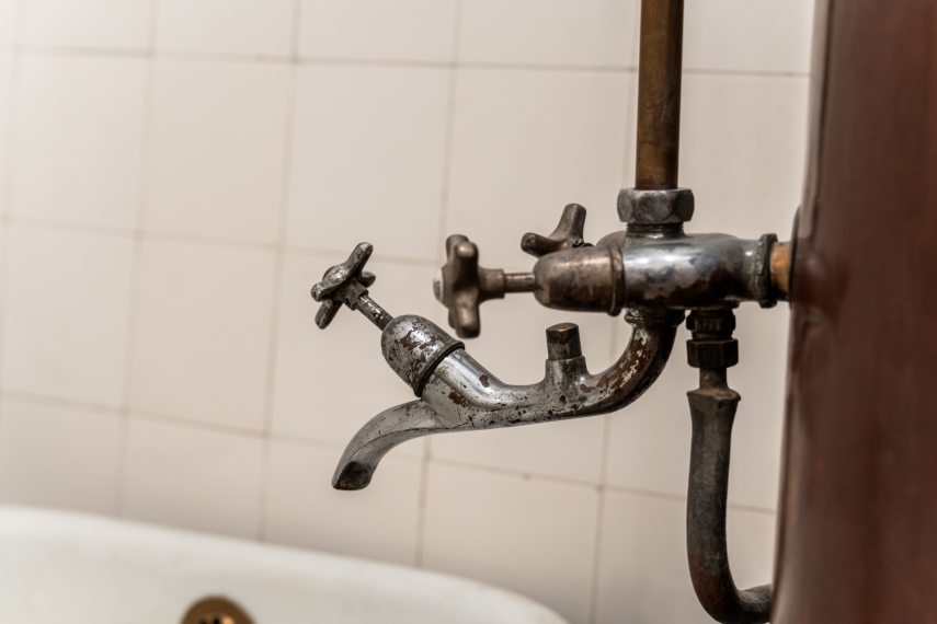 A fémlemezből készült kádak kezdetben nem csatlakoztak rá a hálózatra, ezért lefolyójuk sem volt, hanem ugyanúgy ki kellett belőlük a fürdés után önteni a vizet, ahogyan a mosdótálakból vagy lavórokból; élelmes és ügyes mesteremberek azonban készítettek olyan, szintén hálózattól független, kezdetleges zuhanymodelleket is, amelyeket egy kis pumpás keringetőszerkezettel láttak el. Cinkezett vagy ónozott vasból készültek az eszközök, hogy a rozsdásodást elkerüljék, míg az armatúrák hirdetésekben, katalógusokban az 1870-es években jelentek meg. De nem csupán ez mutatja jól a vízhálózat kiépülésének ütemét.