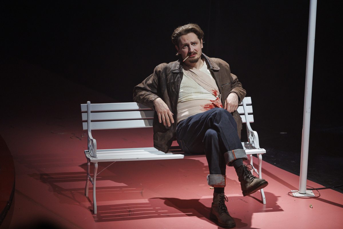 Mindeközben Ficsúr (Berettyán Sándor) a hevenyészett céllövöldében veszi célba az apró figurákat. Később hallható lesz a Rendőrblues, amelyet az Öreg rendőr (Tóth László) és a 2. lovasrendőr (Séra Dániel) adnak elő. Mire a játéktéren keresztül a nézőtérre jutunk, Molnár Ferenc külvárosi legendájának a helyszínén, a Városligetben érezzük magunkat. A színpad egy gigantikus körhinta. A látvány azt sugallja, hogy az élet nem egyéb, mint szerencsejáték. A szereplők tizenkilencre lapot húznak, hiszen aki felszáll a körhintára, annak nincsen többé leszállás. Kétségtelenül működik a látvány metaforája, ám a filmvetítés a nézőtér bal oldalára helyezett székekről nem vagy alig látható.