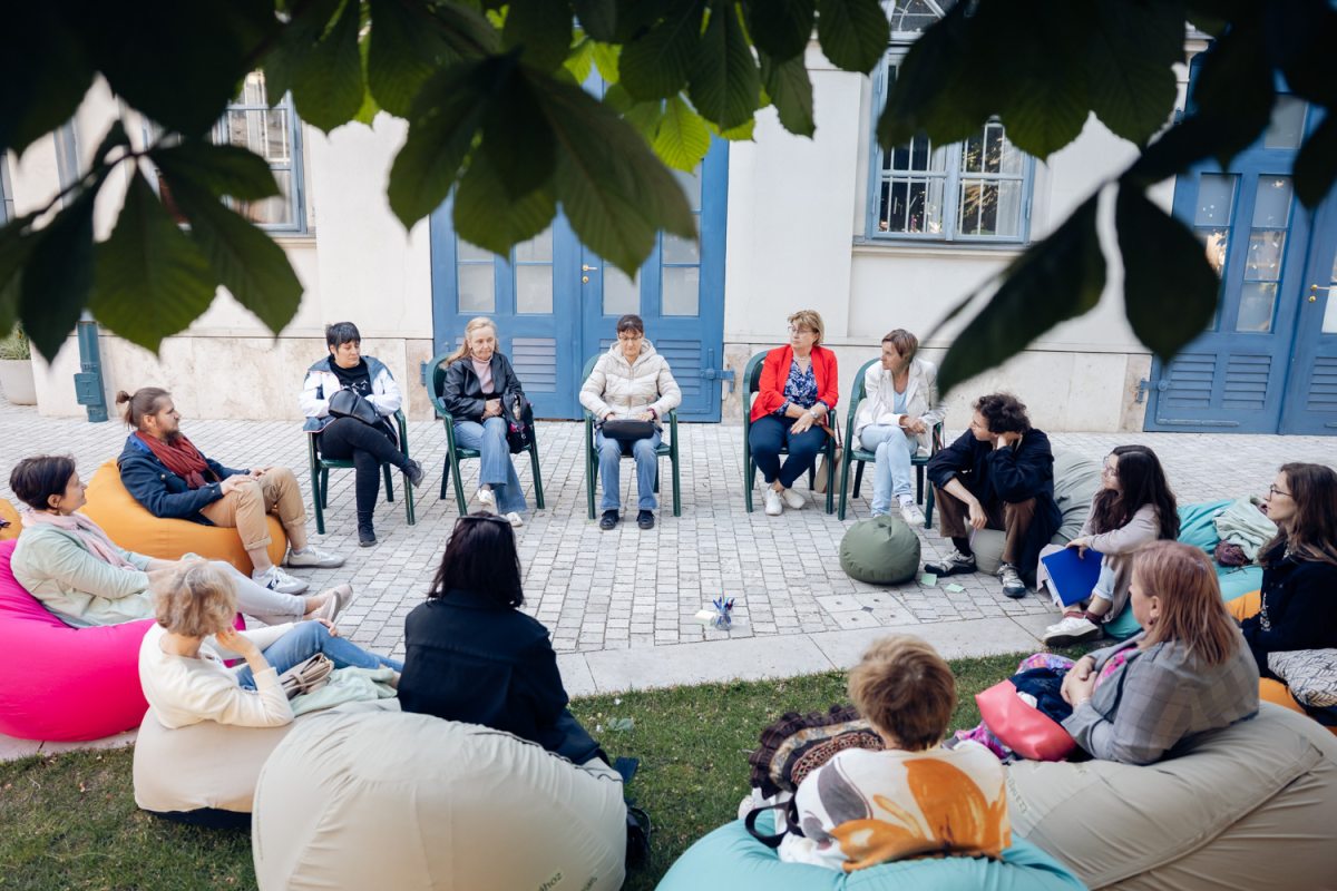 Beszélgetős találkozóra hívták a PIM munkatársai a Jókai életműve iránt érdeklődőket, Márton Brigitta és Mezei Kristóf vezették a beszélgetést, amelynek helyszíne a múzeum kertje volt.