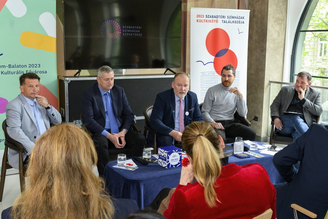 Amikor ezután ismét Nagy Viktor jut szóhoz, hazabeszél. Megemlíti ugyanis, hogy Salföldön idén először a Thália is szabadtéri produkciókkal lesz jelen: az iskola udvarán megnyílik a Thália Nyári Kert. Alsóörs polgármestere, Hebling Zsolt József varázslatos új rendezvényhelyszínükről, a korábbi vöröskőbányában kialakított Amfiteátrumról beszél, amelynek páratlan értékét már 2000-ben felfedezték, de csak másfél éve, európai források bevonásával sikerült teljesen felújítaniuk. Erdei játékterük sok színházi előadásnak adhat majd otthont. Mészáros Miklós, Balatonboglár polgármestere a magyar avantgárd képzőművészet történetében jelentős Kék kápolnai tárlatokról, a Csiky Gergely Színházzal való ’70-es, ’80-as évekbeli együttműködésről, jazz- és szüreti fesztiváljukról, valamint szépen felújított szabadtéri színpadukról és „esőhelyszínükről”, a művelődési házról ejt szót.