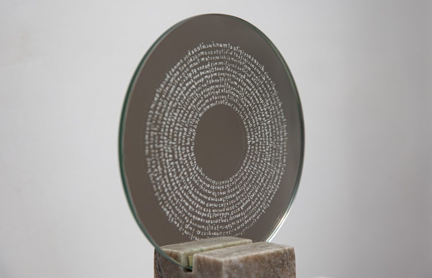 A jelen tárlaton több alkotását először állítja ki a művész. Legújabb művei a lélek és a lelkiismeret vizsgálatával foglalkoznak. A tüköralapú alkotásokon a művész kihasználja a médium sajátosságait, valamint a lélekhez és a tükörhöz kapcsolódó képzettársításokat is. A tükör mint kép működik, a munkáknak fontos része a tükröződés jelensége. Emellett a tükör hordozó is, amelyen az írás jelenik meg képként.