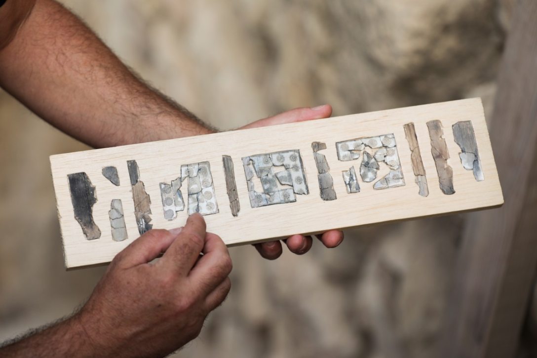 „Összeraktunk és -illesztettünk több száz darabkát, és a folyamat végén megérthettük, hogy a lelet legalább 12, egyenként mintegy 5×5 cm-es négyzet alakú panelt burkolt, amelyeket eredetileg beépítettek a fa bútorokba” – mesélték a kutatók a lapnak.