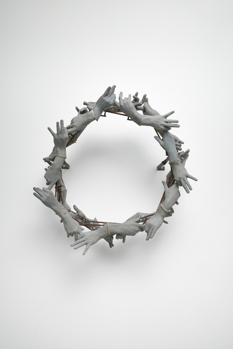 A politikai tradíciók mellett egy-egy mű a művészettörténeti, a kulturális, a szakrális és a természeti örökséget is megidézi, és az alkotások erősen reflektálnak egymásra. Csákány István betonplasztikája a kiállítás címét is adó Örökségünk Bruce Nauman Hand Circle című munkájának parafrázisa. Az egymásba fonódó, megkövült kézfejek halotti koszorúvá állnak össze, míg a szexuális aktusra utaló kézmozdulatok újabb réteggel gazdagítják a munkát, falra vetett árnyéka pedig az eredetinek és másolatnak az örökség fogalmával szintén összefüggő kérdését veti fel.