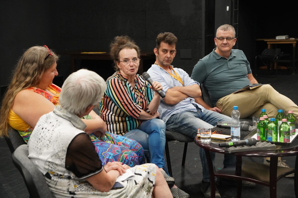 Stuber Andrea az OSZT programjának keretes szerkezetére hívta fel a figyelmet: a fesztivált az 1983-ban játszódó, szintén személyes emlékekből építkező marosvásárhelyi Ház a blokkok között (beszámolónk a szakmai beszélgetésről itt olvasható), nyitotta. Az 1981-ben játszó Boris Isaković és Jasna Đuričić kapcsán – akiket az újvidéki Szerb Nemzeti Színház szintén Tomi Janežič rendezte Sirályában a temesvári TESZT-en és a budapesti MITEM-en is láthatott a magyar közönség – a kritikus arról beszélt, hogy „Trianon elvett, de adott is valamit”, ami a határon túli magyar színházakban érzékelhető sajátos színjátszás, amelybe „beleszivárog a másik kultúra”, és – nem vitatva a határon túli magyarság nehézségeit – ami nézőként „élményszerű”.