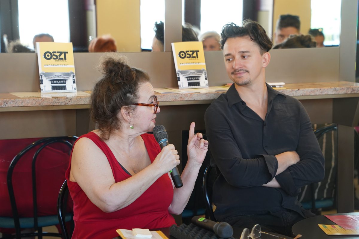 Az Országos Színházi Találkozó (OSZT) versenyelőadásaihoz délelőttönként beszélgetések kapcsolódnak, amelyeken az érdeklődők munkatársunk, Seres Gerda moderálásával betekintést nyerhetnek az alkotófolyamatba, és a felkért rendező, dramaturg, kritikus vagy épp színházi szakíró hozzászólóknak köszönhetően közösen gondolkodhatnak a produkció által felvetett kérdésekről. A napi panelt az aktuális előadás rendezője mellett Faragó Zsuzsa dramaturg és Bajnai Zsolt újságíró alkották.