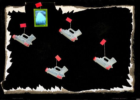 Ekkortájt látványosan túllépett a hagyományos fotóművészeti megoldásokon. A fotográfiákat nem megszokott módon keretezte, feliratokkal értelmezte át a látványt, illetve belefestett, rajzolt a felvételekbe. Legtávolabbra a fényképezéstől a Védjük a békét (1977) címet viselő tárgykollázsa jutott. Ezen szögre akasztott vízipisztolyok függenek. S mint Bán András emlékeztetett: Atika lefestette a béke szót.