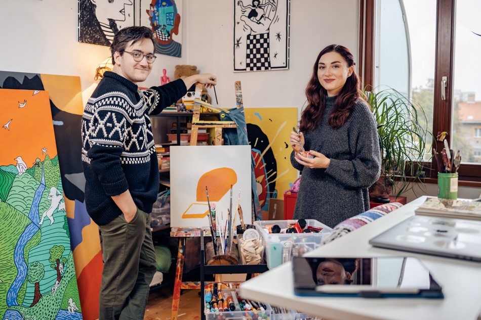 Nicole jelenleg művészettörténetet tanul a McDaniel College budapesti campusán, és emiatt sokszor akadémikusabb hozzáállással tud közelíteni a képeimhez, mint én. Gyakran közösen futjuk át a rajzfüzeteimet, és ő olyan dolgokat vesz észre a skicceimben, amik nekem soha nem jutnának eszembe. Van egy vizuális világom, amit én alakítottam ki gyerekkoromtól kezdve, de a festmények kompozícióját és a színeket abszolút közösen találjuk ki. Festés közben is folyamatosan együttműködünk, különösen, ha kiállítást rakunk össze. Miközben én befejezem az egyik képet, Nicole már a következő hátterét alapozza.