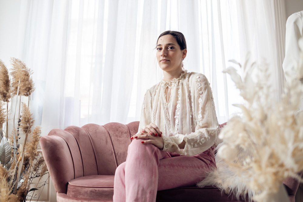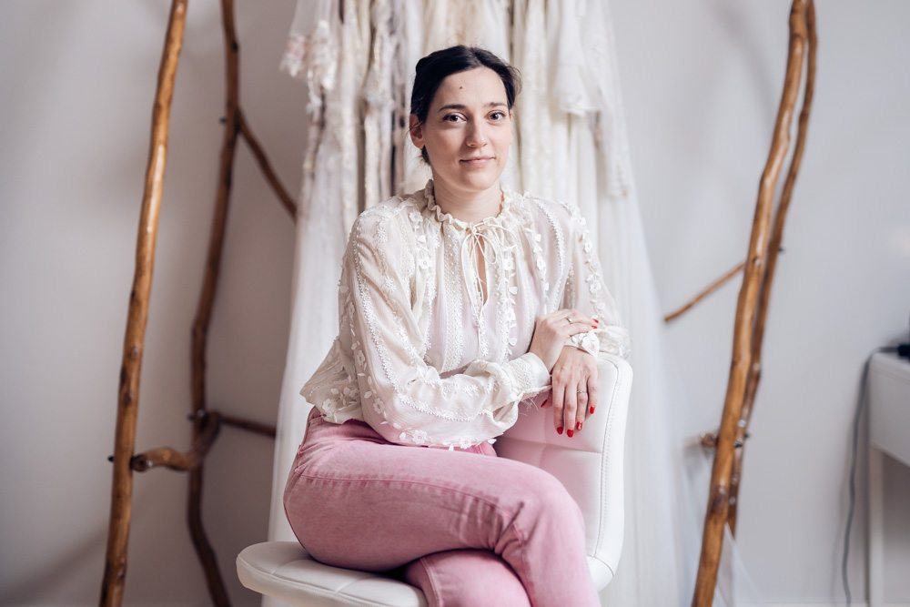 Nagy Dominika az egyszerre praktikus és meseszép Pomponia esküvői ruhák megálmodója, amelyeket a menyasszonyok személyiségéhez igazít, és szívét-lelkét beléjük varrja.