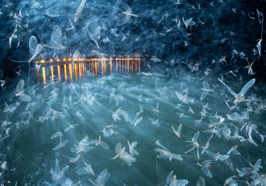 Tavaly augusztusban huszonötször mentem ki a Duna-partra Budapesttől Nagymarosig, hogy megfigyeljem és megörökítsem a dunavirágrajzást. A tiszavirágokhoz képest ez egy jóval kisebb kérészfaj. Egyéves, víz alatti pete-, majd lárvaéletük után egyszer csak felszínre jönnek, levedlik a lárvabőrt, és nagy tömegben elkezdenek rajzani. A hímek vadul keresik a nőstényeket, a nagy kavarodásban próbálják őket megtermékenyíteni. De a leglátványosabb rész csak ezután kezdődik: a nőstények kompenzációs rajként elindulnak a folyásiránnyal szemben, hogy petecsomóik ne sodródjanak túl messzire attól a helytől, ahol ők is megszülettek. A rajzásban nincs kímélet: ha sikerül párzani, jó, ha nem, a nőstények akkor is raknak petéket, de azokból csak nőstény állatok születhetnek. A rajzás után viszont az életük – vagy inkább haláluk – már közös: a hímek és a nőstények is elpusztulnak.