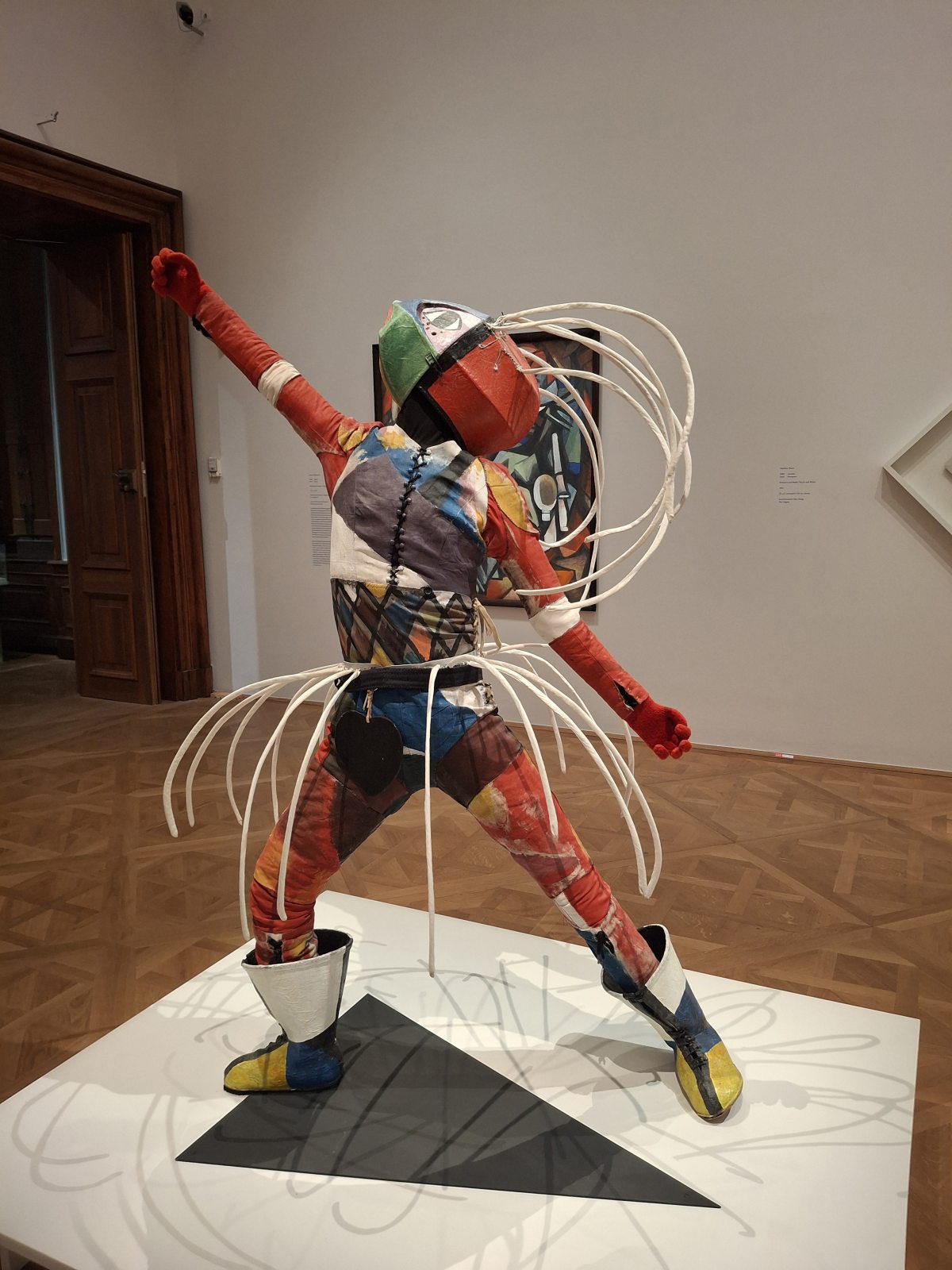 Az első terem különféle irányzatokat villant fel, mintegy bevezetésként. A teret Lavinia Schulz Walter Holdt számára tervezett jelmeze uralja: a művész házaspár expresszionista mozgásművészként dolgozott, előadásaik még a hamburgi avantgárd közeg számára is szokatlannak hatottak. De ami igazán fontos: a páros alkotómunkájában egyértelműen Lavinia volt a meghatározó – ő tervezte a jelmezeket, ő koreografálta a mozdulatokat. A most kiállított, bizarr megjelenésű jelmez egyszerre idéz ősi pogány alakot és futurisztikus testpáncélt. Testtartása egy korcsolyázóéra emlékeztet, de ugyanúgy harcosi póz is.