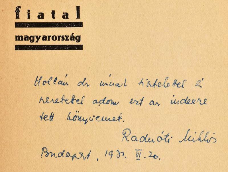 Kétszázezer forintos kikiáltási árról indult a licit Radnóti Miklós Újmódi pásztorok éneke című 1931-es kötetének egyik dedikált példányára.
