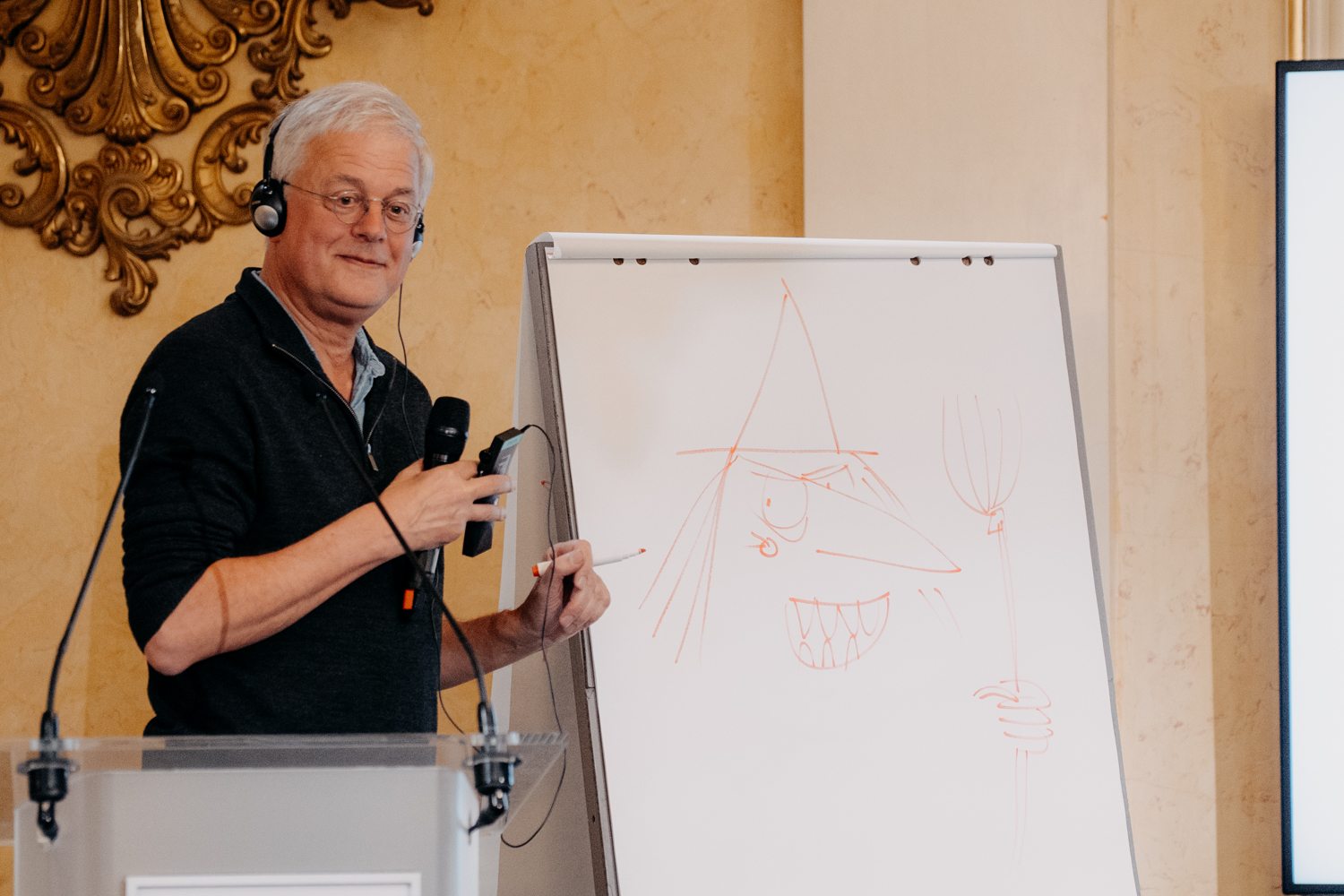 A közönség nemcsak egy beszélgetésen vehetett részt, hanem a közös játékban is: egy rögtönzött boszorkányrajzolás során maga Könnecke is ceruzát ragadott. Elmondta, hogy számára a rajzolás és az írás ugyanannak a történetmesélésnek két oldala: