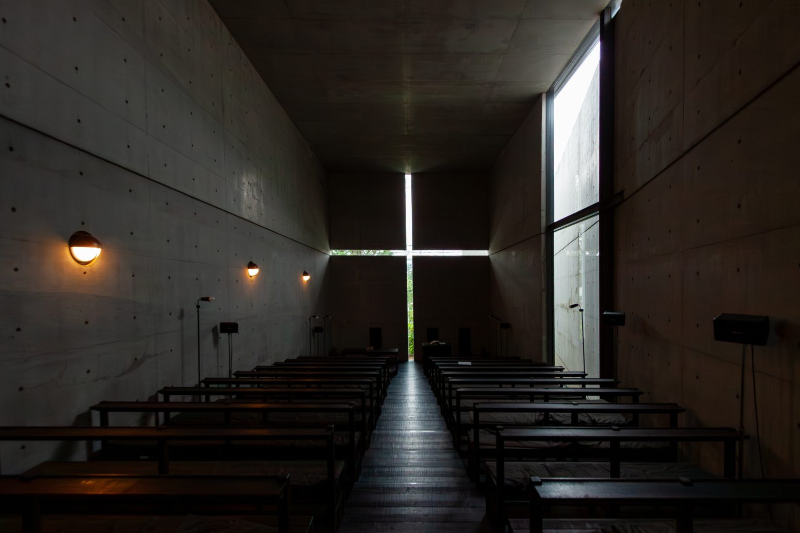 A japán Church of the Light (Ibaraki, Tadao Ando, 1989) is jó példa arra, hogyan válhat a fény maga a spirituális üzenet hordozójává. A betonfalba metszett, kereszt alakú nyíláson átszűrődő fény a csend és a jelenlét szimbolikus megfogalmazása. Ugyanaz az elv érvényesül, mint a református templomterekben: az ige és a fény áll a középpontban, minden más háttérbe húzódik.