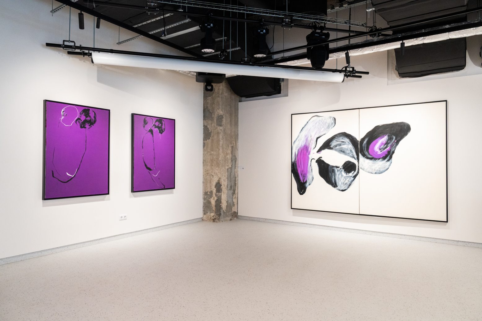 A festményeken a kontúrok, határok gyakran elmosódnak, bizonytalanná válnak, mintha maguk a testek sem lennének többé élesen elkülöníthetők egymástól. Ez a formai bizonytalanság a testi határok feloldódására, az identitás ideiglenes átlényegülésére utal: arra a törékeny emberi állapotra, amelyben az „én” nem zárt, stabil egységként létezik, hanem folytonosan alakuló, töredezett létezésként.