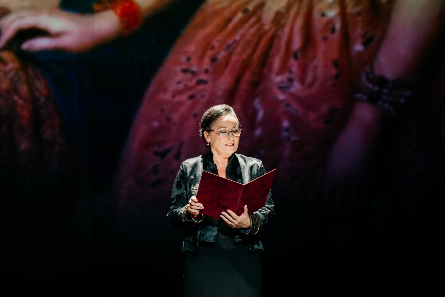 Ezután a színpadon felolvasták a jelöltek laudációit, majd a velük készített filmek levetítése után Novák Irén átadta a közönség szavazatai alapján az idei jelöltek közül kiválasztott nyertesnek, Sodró Elizának a díjat szimbolizáló szobrot.