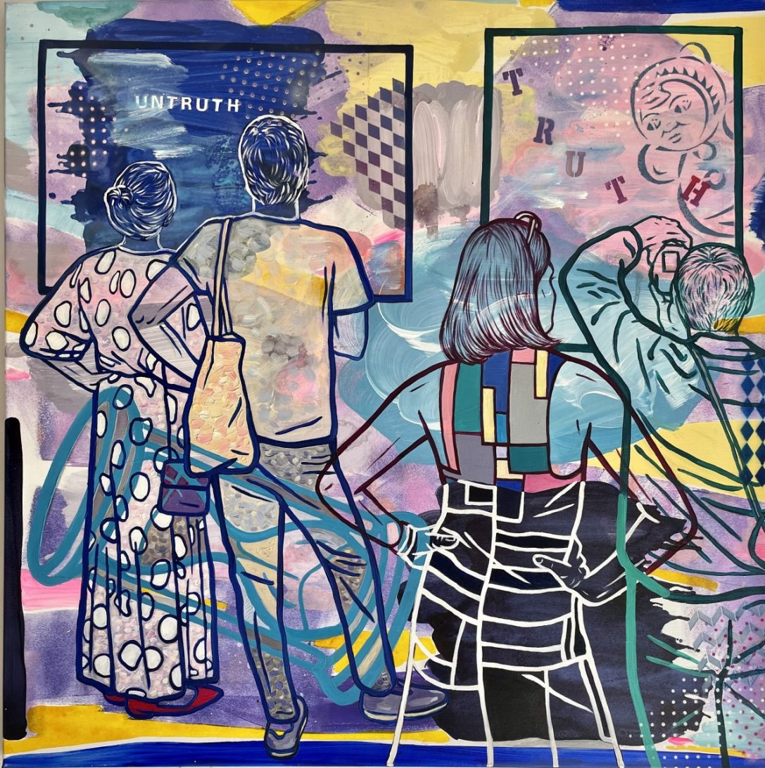 Soós Nóra Fennkölt idő című kiállításának festményei játékra hívják a befogadót. Ha primer módon, pusztán a látvány szintjén olvassa ezeket a képeket, akkor gyönyörködhet élénk, olykor egészen vibráló, máskor neonos színvilágukban. Megörülhet a számára is jelentéssel bíró motívumoknak, elámulhat a festészeti gesztusok sokféleségén. Felfedezheti a különféle rétegek egymásba nyúló körvonalait, rácsodálkozhat a festészeti és grafikai elemek viszonyára. Az első pillanatban ezek a festmények könnyednek, felhőtlennek mutatják magukat. Ám ha elegendő időt töltünk előttük, akkor mélyebb rétegek és a színes kavalkád mögül súlyos üzenetek bukkannak elő.