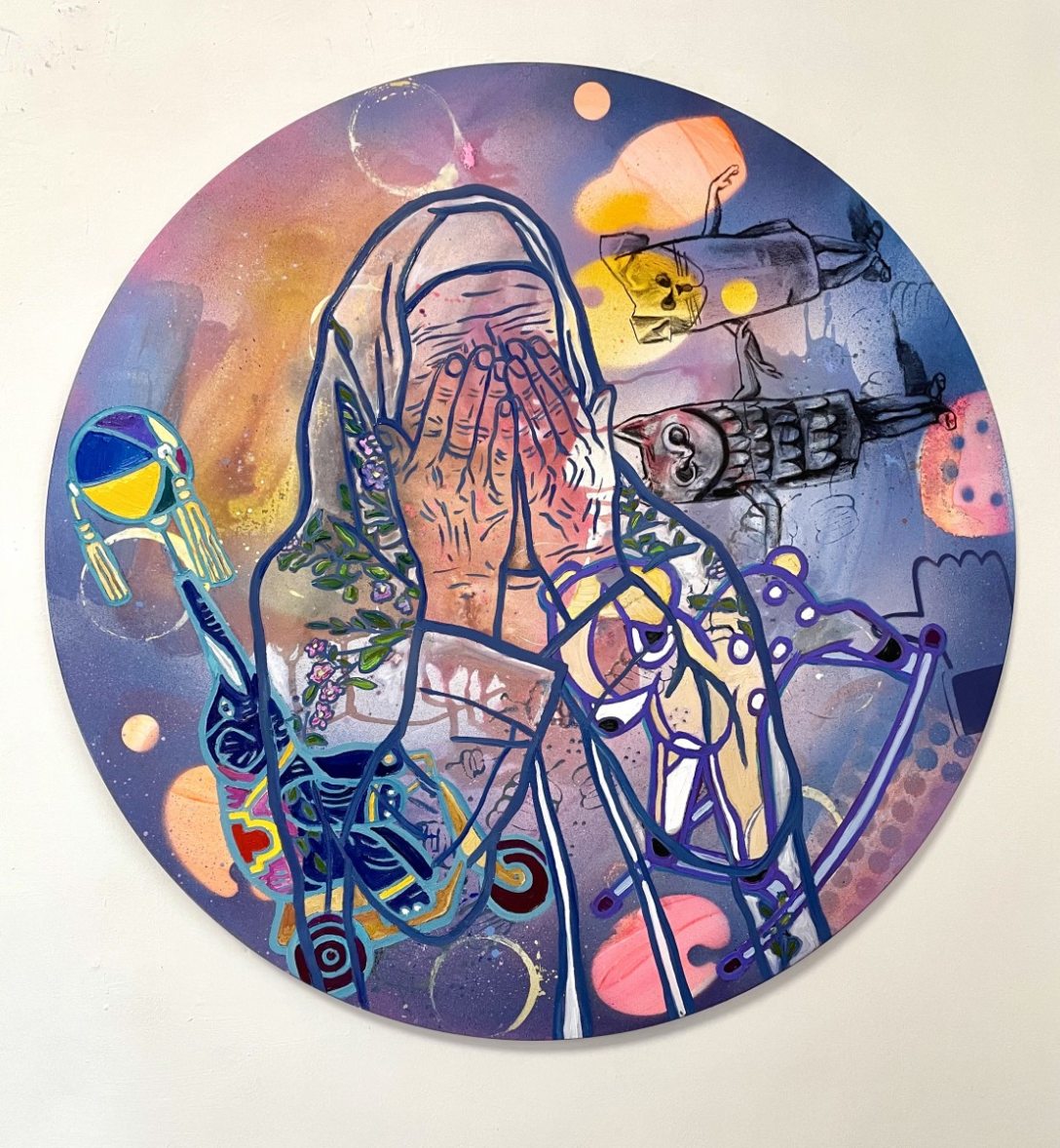 Miközben ezeken a kérdéseken töpreng, a festményeken különféle játékok és figurák képében megidéződik a gyermekkora.