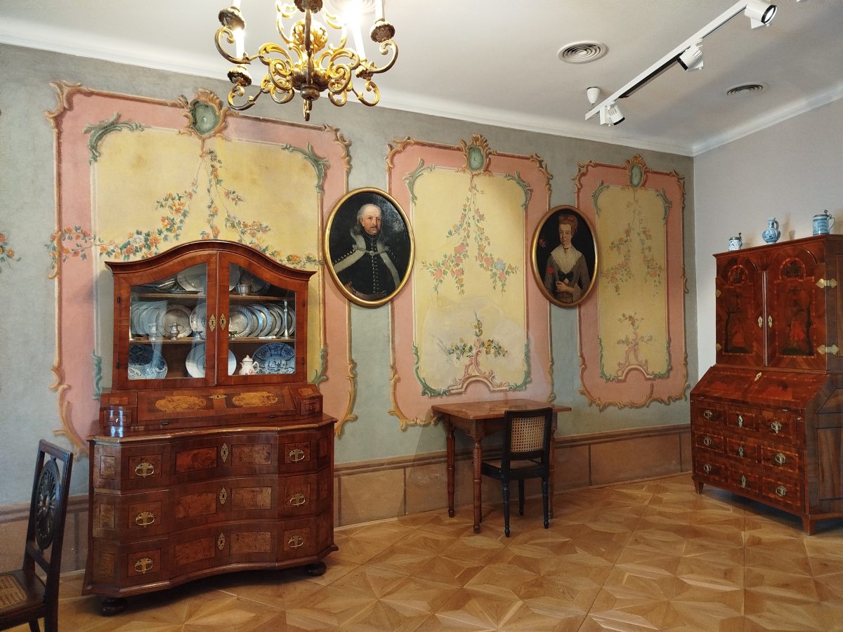 17–19. századi vendégként vagy akár otthon is érezhetjük magunkat. Ha a részletgazdagon berendezett polgári lakásbelsőkben, a ház különböző helyiségein végigsétálunk, akár vendégként, akár otthon érezve magunkat, megláthatjuk, hogyan éltek itt a jómódú polgárok és a személyzetük. Érdemes egészen közel hajolni egy asztalon hagyott könyvhöz, mert akkor kiderül, gyöngyből fűzött a borítója, elidőzni egy üveges szekrény előtt, amely tele van színes üvegpoharakkal. És mindenképp gondolkodjunk el a cselédlányok sorsán, akik egy különös asztalágyban aludtak. Az alvásra szolgáló felületet ugyanis az asztallap alól húzták ki. Az asztalosmesternek pedig a skandináv minimalista és funkcionális designt megszégyenítően arra is volt gondjuk, hogy az ágydeszka alá még egy tizenöt-húsz centi magas fiókot is betervezzenek.