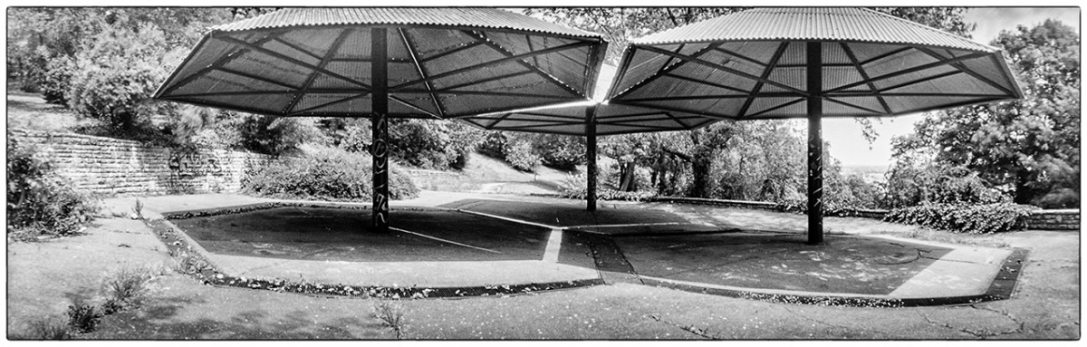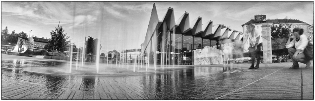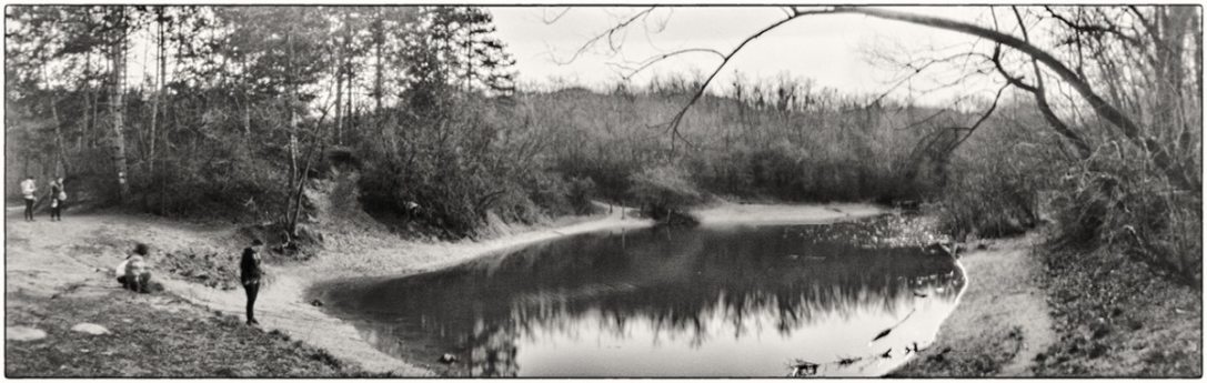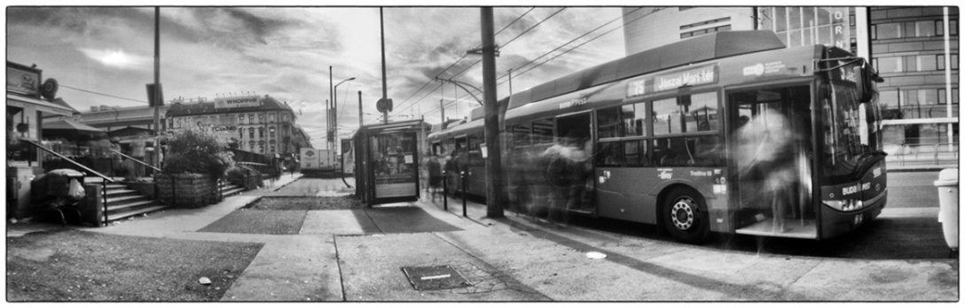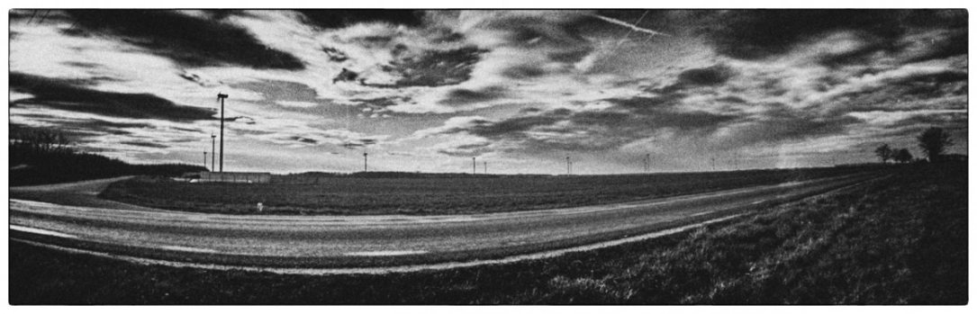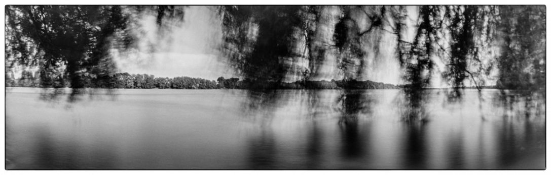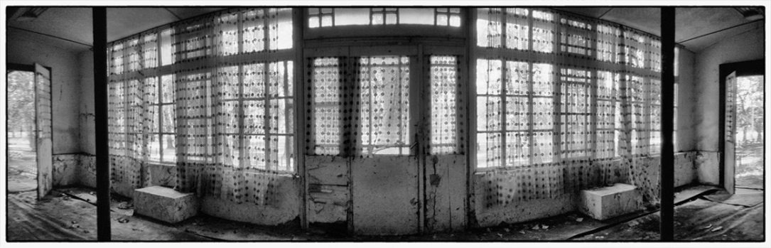 2019 őszétől lehetőségem volt a Szélesvásznú narratívák munkacímű kiállítási anyagomon dolgozni, s ez újra felvetette a kérdést: vajon van-e jogosultsága a camera obscura által használt panorámaformátumnak, képes-e ez a technika és ez a formátum narratív (elmesélő) hangon megjeleníteni a képeket. Történetekben gondolkodtam, amelyeket a befogadó közeg talál meg magának minden egyes képben. Ezek a történetek lehetnek emberekkel, szereplőkkel vagy épp azok hiányával létrejövők. A munkához Benkő Imre Horizon című fotóesszéje és Balla András Menedék című könyve is támpontot adott.