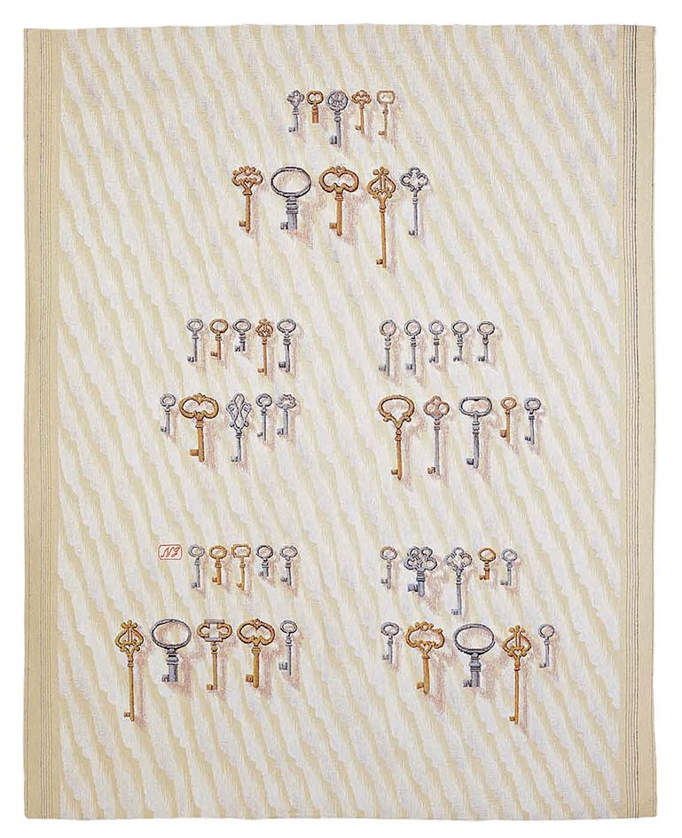 Az Oldás és kötés című, hasonló kompozíciójú és méretű munkám kulcsokat ábrázol, hogy Magyarország jövője nyitható legyen minden jót beengedni, minden rosszat kizárni.